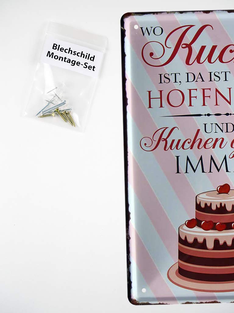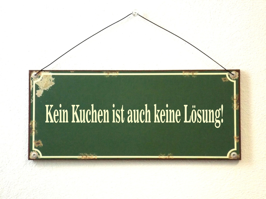 Das perfekte Geschenk für alle Kuchen-Liebhaberinnen! Dieses niedliche Metallschild mit dem Spruch 'Kein Kuchen ist auch keine Lösung' bringt jeden zum Schmunzeln. Im schönen Vintage-Braun mit geschwungenem Rahmen sieht es einfach charmant aus. Mit 7,5x20cm ist es ideal für die Küche, Wohnzimmer oder als Türschild. Super für Frauen, die gerne backen und naschen, aber auch auf ihre Linie achten. Ein liebevoller Wink, dass sie perfekt sind, so wie sie sind! Aus Aluminium gefertigt - leicht und robust. Der Druck ist hochwertig und die Farben glänzen schön. Einfach mit doppeltem Klebeband, Nägeln oder Schnur befestigen (Befestigungsmaterial nicht enthalten). Ob für die beste Freundin, Ehefrau oder Mama - dieses Schild kommt immer gut an und sorgt für ein Lächeln im Gesicht!