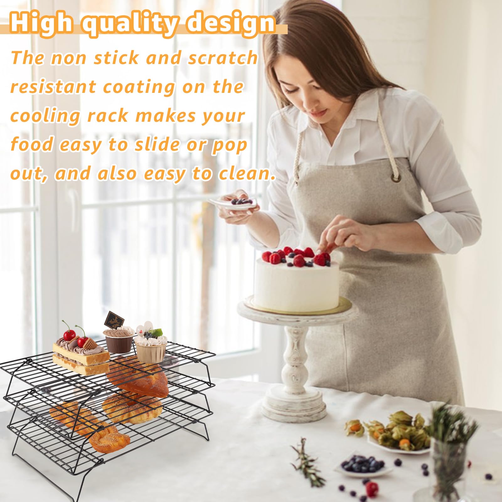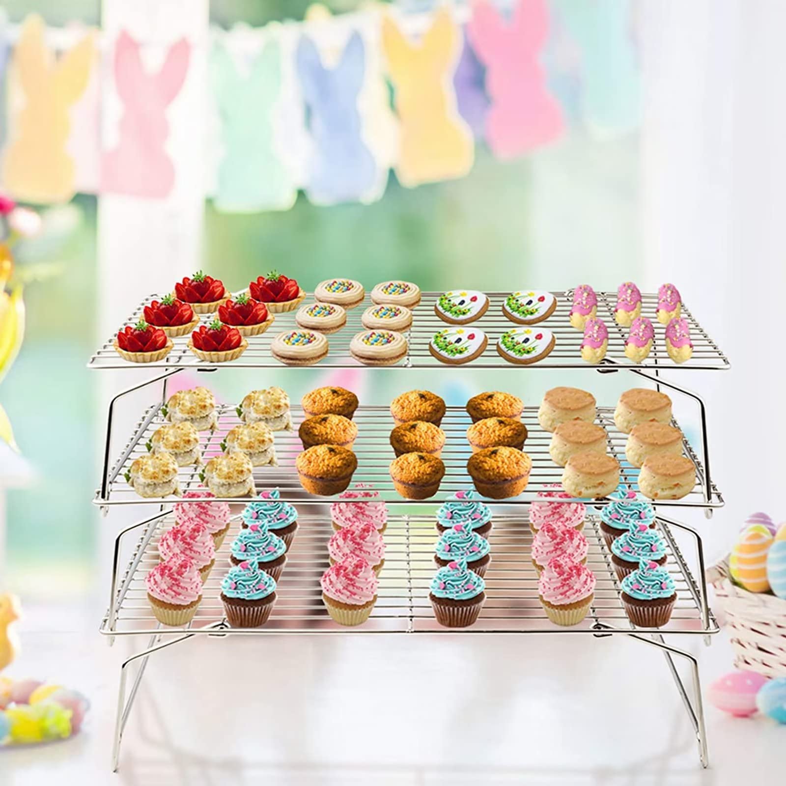 2 Stück Kuchengitter Abkühlgitter Edelstahl - 3-stöckig Stapelbar