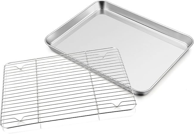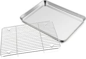 Perfekt für frische Backwaren! Dieses Set mit 4 Edelstahl-Kuchengittern (je 35x22cm) ist ideal zum Abkühlen von Kuchen, Keksen und Brot. Mit 1,3cm hohen Füßen für gute Luftzirkulation. Spülmaschinenfest und backofenfest. Die glatte Oberfläche verhindert Anhaften, leicht zu reinigen. Stapelbar für platzsparende Aufbewahrung. Auch geeignet zum Grillen und Dämpfen. Aus hochwertigem, lebensmittelechtem Edelstahl - rostfrei und langlebig. Dein unverzichtbarer Helfer in der Küche!