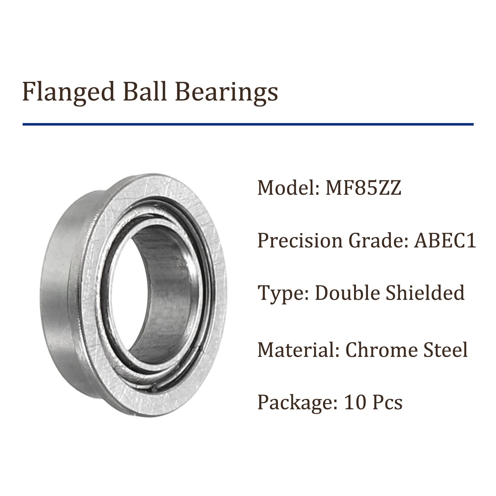 Professionelle Kugellager für verschiedene Anwendungen! 4 Stück MF85-2RS Lager mit Flansch, Maße: 5mm Innendurchmesser, 8mm Außendurchmesser, 2,5mm Dicke. Flanschdurchmesser 9mm. Aus Chromstahl (GCr15) mit hoher Härte und Verschleißfestigkeit. Beidseitig gummi-gedichtet, öl- und flüssigkeitsbeständig. ABEC1 Genauigkeit, Geräuschpegel Z1. Perfekt für Motoren, Getriebe, Drucker, Rasenmäher und viele industrielle Anwendungen. Einfach einsetzen und von der zuverlässigen Performance profitieren. Wartungsarm und langlebig - genau das was du für dein Projekt brauchst!