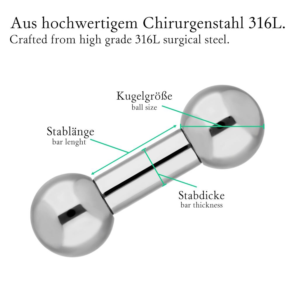 Du suchst einen qualitativ hochwertigen Piercingstab? Der eeddoo Titan Barbell ist genau das Richtige! Ohne Kugeln geliefert, damit du deine eigenen Kugeln nach Wahl verwenden kannst. Aus medizinischem Titan G23 in Silber - perfekt für sensible Haut und allergikerfreundlich. Wählbar zwischen 1,2mm oder 1,6mm Stabdicke und verschiedenen Längen von 5mm bis 24mm. So findest du garantiert die perfekte Passform für dein Piercing. Super vielseitig einsetzbar: Für Zungenpiercings, Brustwarzenpiercings, Intimpiercings, Ohrpiercings oder sogar Industrial Piercings. Das klassische Design ist die Basis für individuelle Kreationen - kombiniere ihn mit deinen Lieblingskugeln! eeddoo steht für tollen Piercingschmuck zu fairen Preisen ohne Kompromisse bei der Qualität. Einfach die gewünschte Größe auswählen und bestellen. Perfekt für Piercing-Fans, die ihren Look selbst gestalten wollen. Ob Neupiercing oder Wechsel des alten Stabs - dieser Titan Barbell überzeugt durch seine Langlebigkeit und Verträglichkeit. Dein neuer Lieblings-Piercingstab wartet auf dich!