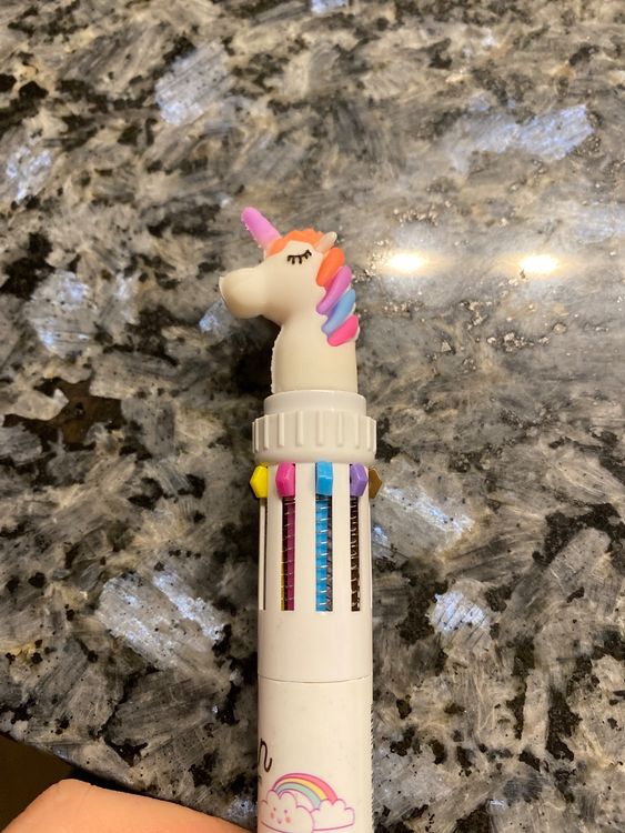 Total niedliche Einhorn-Stifte die Kinder lieben werden! 8 bunte Kugelschreiber mit verschiedenen Einhorn-Kappen - da strahlen Kinderaugen. Jeder Stift hat 4 Farben: blau, rot, grün und grau. Mit 0,5mm Spitze schreiben sie super glatt und hinterlassen keine Flecken. Perfect für die Schule, Hausaufgaben oder einfach zum Malen und Kritzeln. Übrigens: Die Stifte sind nur 9,5cm lang - ideal für kleine Kinderhände. Aus ungiftigem Material und ohne Blei, also vollkommen unbedenklich. Mega als Geburtstagsgeschenk, für die Schultüte oder als Party-Mitgebsel. Macht einfach Spaß damit zu schreiben und motiviert sogar Schreib-Muffel. Einfach perfekt für kleine Künstler und Schulanfänger!
