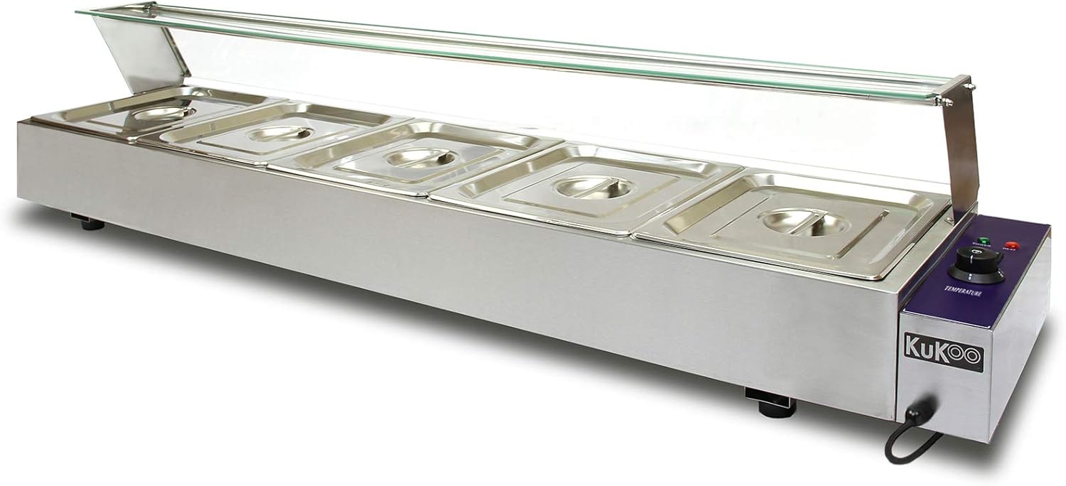 Professionelles Warmhalten für deine Küche! Diese Bain Marie aus Edelstahl hat 3 GN 1/2 Einsätze mit je 7 Liter Fassungsvermögen. Bei 93x35x37,5 cm passt sie perfekt in jede Gastroküche. Temperatur von 30-110°C einstellbar, mit 1,5kW Leistung (220-240V). Der Wasserbad-Effekt hält Speisen konstant warm ohne auszutrocknen. Praktischer Wasserablaufhahn und leicht zu reinigen. Ideal für Buffets, Catering oder Restaurant - ob für Soßen, Gemüse oder Fleisch. CE-geprüft für sicheren Betrieb. Mach deine Speisen immer servierbereit!