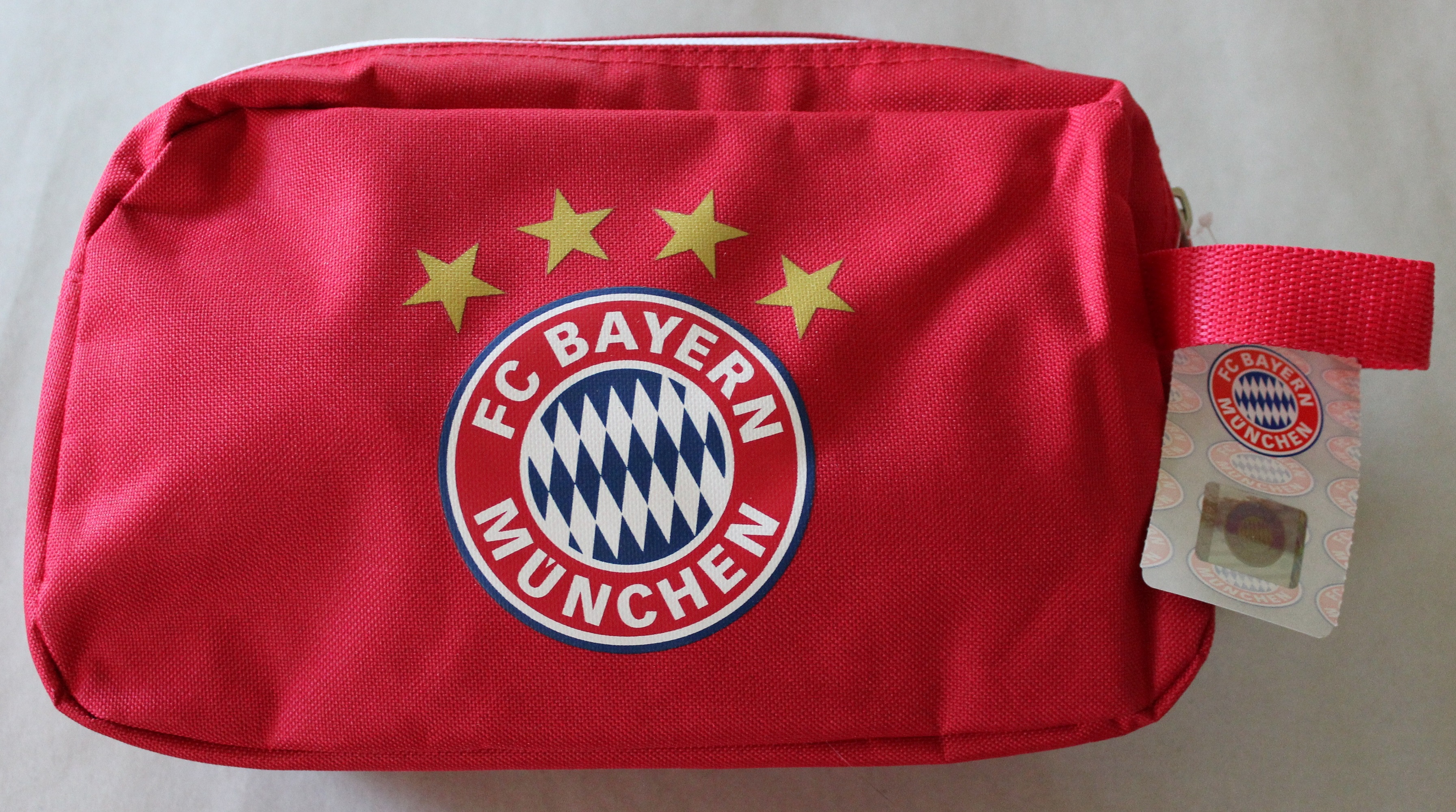 Als echter FCB-Fan brauchst du diesen offiziellen Bayern München Kulturbeutel! Der coole Beutel in schickem Rot lässt sich mit deinem Namen personalisieren - so verwechselt ihn keiner mehr in der Umkleide oder auf Reisen. Mit den Maßen 29 x 18 x 11 cm und etwa 2 Litern Fassungsvermögen passt alles rein was du brauchst: Zahnbürste, Rasierer, Duschgel und Co. Das Polyester-Material ist super pflegeleicht und der Reißverschluss hält sicher verschlossen. Drinnen findest du 4 praktische Einstecktaschen für Ordnung und einen Haken zum Aufhängen. Perfekt als Geschenk für Geburtstage, Weihnachten oder einfach so - für Jungen, Männer und alle Fußballfans. Einfach auf 'Jetzt anpassen' klicken und deinen Wunschnamen mit gewünschter Farbe angeben. So zeigst du deine Bayern-Leidenschaft auch unterwegs!