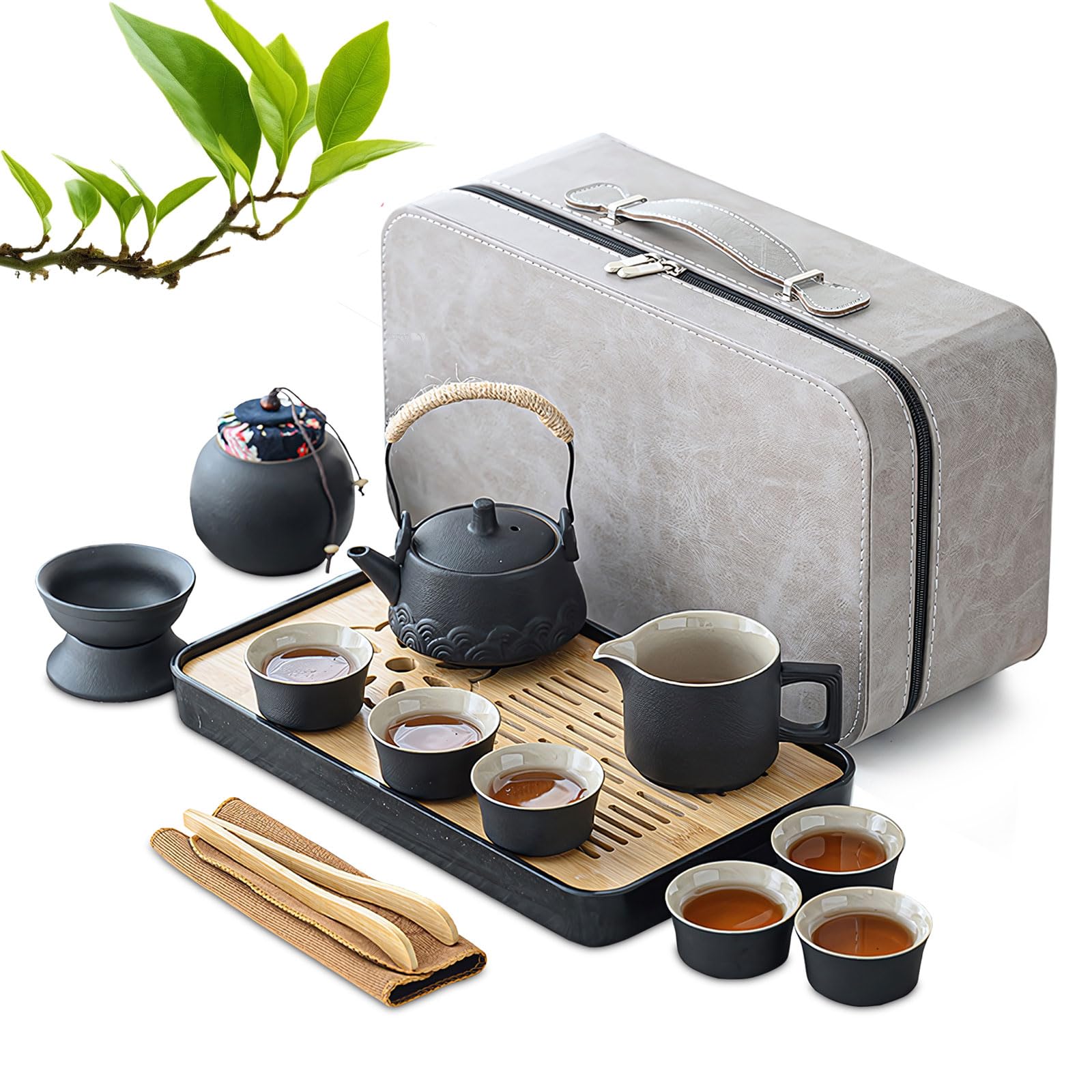 Teezeremonie für unterwegs! Dieses wunderschöne 14-teilige Teeset im traditionellen chinesischen Stil bringt Teegenuss überall hin. Enthält 230ml Teekanne, 6 Teetassen (45ml), Gerechtigkeitsbecher, Teebehälter und Zubehör.