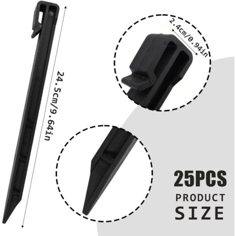 Mann, diese 25 Erdspieße sind ja mal total praktisch für Garten, Camping und Co! Aus robustem Kunststoff gefertigt, rosten nicht und brechen kaum - haltbarer als diese billigen Metallteile. Mit 25cm Länge und der scharfen Spitze gehen sie super einfach in den Boden - einfach mit nem Hammer reinhämmern und fertig. Das Bajonett-Design oben hält super alles fest, was du befestigen willst. Perfekt für Zelte, Planen, Gartennetze oder um Rasenkanten schön zu definieren. Auch für Hundezäune oder aufblasbare Pools super geeignet. Die schwarze Farbe ist dezent und fällt kaum auf. Mit 25 Stück im Set hast du genug für mehrere Projekte oder kannst Ersatz da haben. Einfach aus dem Boden ziehen wenn du sie nicht mehr brauchst - wiederverwendbar ohne Ende. Ob im heimischen Garten oder beim Camping-Ausflug - diese Heringe machen jeden Untergrund sicher. Einfach ein Muss für jeden Outdoor-Fan!