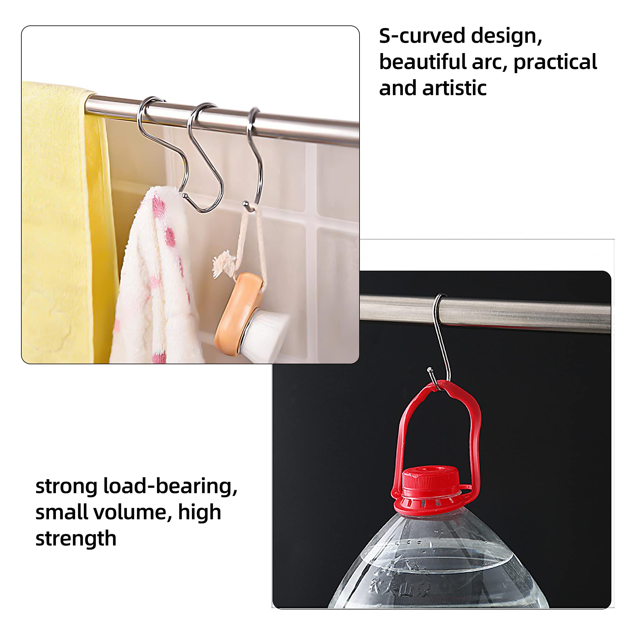 Ordnung muss sein - und mit diesen praktischen S-Haken wird's ganz einfach! Im Set bekommst du 20 Haken in zwei Größen: 10 große (9,2x4,3 cm) und 10 kleine (6,4x2,9 cm). Perfekt, um endlich Ordnung in Küche, Bad, Garten oder Büro zu bringen. Die Haken bestehen aus robustem ABS-Kunststoff und Edelstahl - also nichts mit Verformen oder Brechen! Das geniale Sicherheitsverschluss-Design verhindert, dass was runterfällt, und die glatte Oberfläche ist super pflegeleicht. Einfach über Stangen oder Haken legen, und schon hält alles sicher. Ob Töpfe, Werkzeuge, Kleidung oder Pflanzen - mit diesen Alleskönnern schaffst du Platz und Übersicht. Und das Beste: Sie sind super vielseitig! Drinnen wie draußen einsetzbar, für Schals, Krawatten, Taschen, Deko... Deiner Kreativität sind keine Grenzen gesetzt. Also, Schluss mit dem Chaos - hol dir diese cleveren Haken und mach dein Zuhause endlich ordentlich!