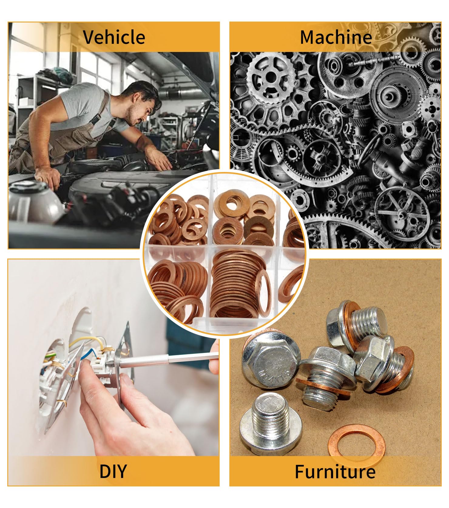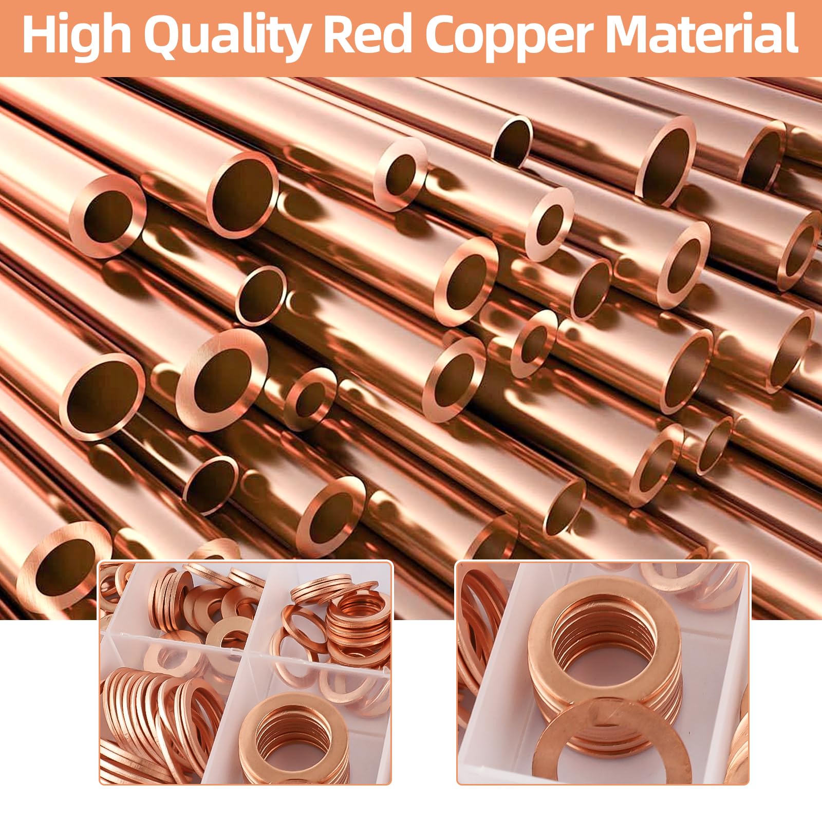 Suchst du zuverlässige Dichtungen für deine Projekte? Dieses Set mit 60 Kupfer-Dichtringen in der Größe M6x10x1mm ist die perfekte Lösung! Die Ringe sind aus hochwertigem Kupfer gefertigt, das nicht nur extrem hitzebeständig ist (bis zu 1083°C), sondern auch ausgezeichnet gegen Korrosion und Rost geschützt ist. Das bedeutet: Du kannst die Dichtringe mehrmals verwenden, ohne dass sie an Qualität verlieren. Die glatte Oberfläche und die präzise Verarbeitung sorgen für minimale Reibung zwischen den Bauteilen. Perfekt geeignet für alle möglichen Anwendungen: Ob im Auto für Ölwannendeckel, Bremsleitungen oder Kraftstoffsysteme, in Maschinen und Generatoren oder in Haushaltsgeräten - diese Dichtringe leisten überall zuverlässige Dienste. Sie verteilen die Last gleichmäßig, verhindern das Beschädigen von Oberflächen und beugen lästigen Lecks vor. Mit einem Innendurchmesser von 6mm, Außendurchmesser von 10mm und einer Stärke von 1mm passen sie perfekt für Standard-M6-Schrauben. Das 60-teilige Set gibt dir genug Material für mehrere Projekte und Reparaturen. Ein unverzichtbares Utensil für jede Werkstatt, jede Garage und jeden Hobbybastler!