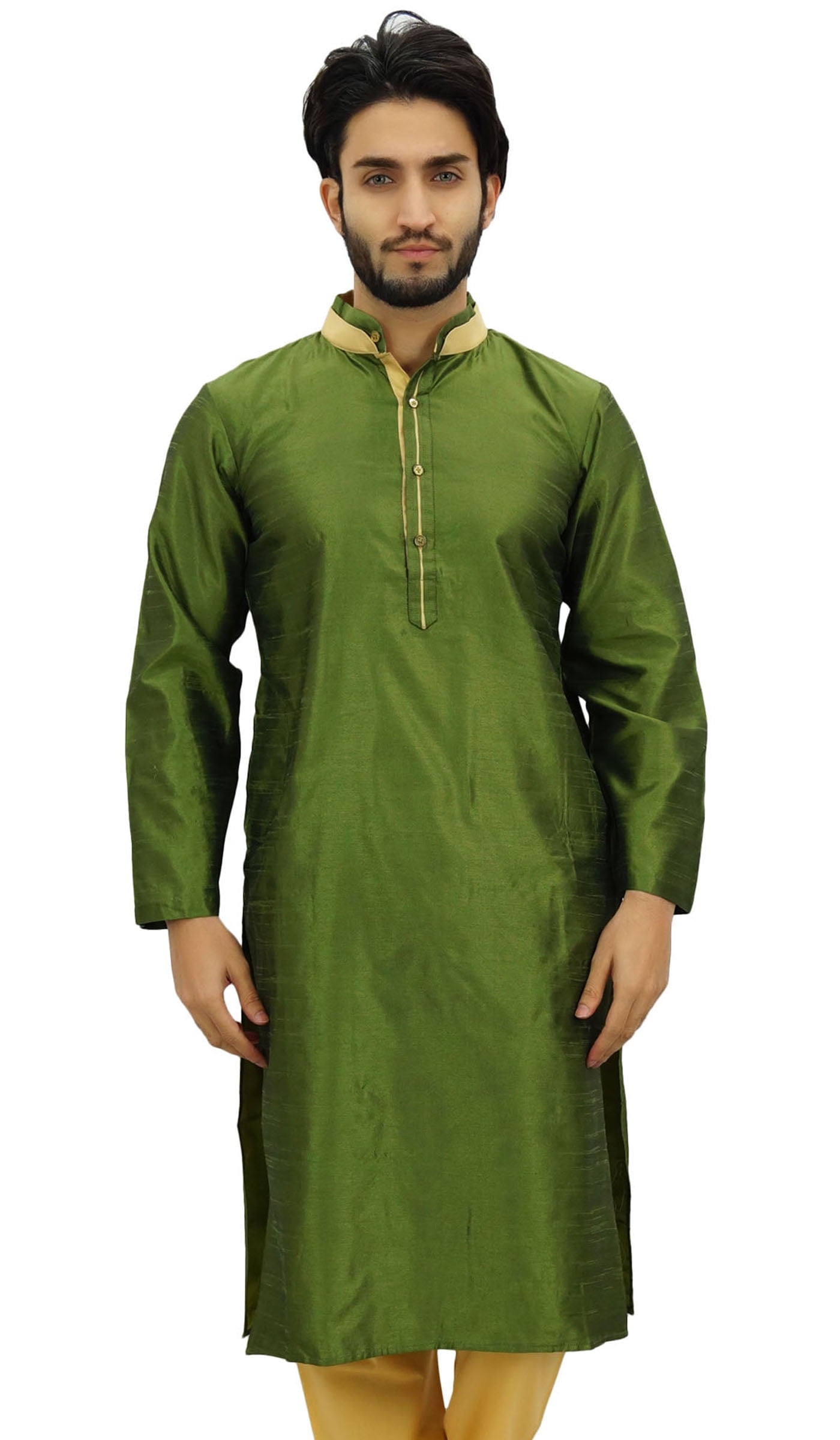 Die Kurta aus weichem Baumwollsatin mit stylischem Nehru-Kragen sitzt perfekt. Dazu gibt's einen kostenlosen weißen Churidar (Pyjama) aus Baumwolle.
