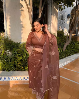 Wow, dieses ANNI DESIGNER Kurta Set ist einfach traumhaft! Perfekt für alle, die es bequem und stylisch mögen. Das Set besteht aus 100% Rayon Viskose - super weich und angenehm auf der Haut, sodass du es den ganzen Tag tragen kannst ohne zu schwitzen.\\n\\nWas du bekommst:\\n• 1 bestickte Kurta mit 3/4-Ärmeln\\n• 1 passende Hose im trendigen Schnitt\\n• 1 Dupatta für den vollendeten Look\\n\\nGrößentabelle Kurta:\\nS: 91,4cm | M: 96,5cm | L: 101,6cm | XL: 106,7cm | XXL: 111,8cm\\n\\nGrößentabelle Hose:\\nS: 71,1cm | M: 76,2cm | L: 81,3cm | XL: 86,2cm | XXL: 91,4cm\\n\\nEgal ob für den Alltag, Feste, Partys oder besondere Anlässe - dieses ethnische Set macht immer eine gute Figur! Der gerade Schnitt und der farbige Ausschnitt sorgen für einen lässigen Look, der trotzdem total stylisch ist. Einfach anziehen und strahlen!\\n\\nPflegehinweis: Am besten zur chemischen Reinigung geben, dann bleibt das schöne Besteck lange erhalten. Und denk dran: Leichte Farbabweichungen können durch unterschiedliche Bildschirme entstehen - aber das schwarze Design ist auf jeden Fall ein Hingucker!