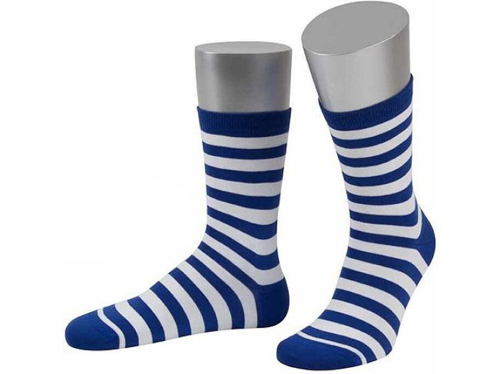 Hübsche Ringelstrümpfe in blau-weiß - kurz und super bequem! Aus 70% Polyacryl und 30% Elasthan, dehnbar und weich.