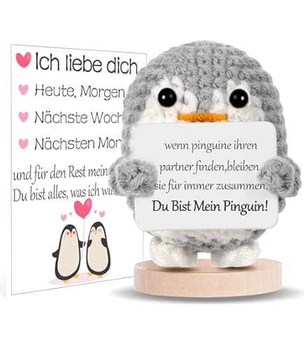 Einfach niedlich! Dieses handgestrickte Pinguin-Pärchen aus kardierter Schurwolle ist das perfekte Geschenk für deinen Liebsten. Die beiden Pinguine schmiegen sich innig aneinander und symbolisieren so eure Verbundenheit. Jedes Stück ist liebevoll von Hand gefertigt und fühlt sich super weich und kuschelig an. Im Set enthalten: zwei Pinguine, ein Schlüsselanhänger mit gravierter Liebesbotschaft, ein Jutebeutel und eine Grußkarte. Ob zum Jahrestag, Valentinstag, Geburtstag oder einfach als Überraschung - dieses Geschenk kommt garantiert von Herzen. Die Pinguine sind nicht nur dekorativ, sondern erinnern deinen Partner immer an eure Liebe, wenn ihr mal nicht zusammen sein könnt. Ein persönliches und emotionales Geschenk, das weit mehr bedeutet als irgendeine Standardüberraschung!
