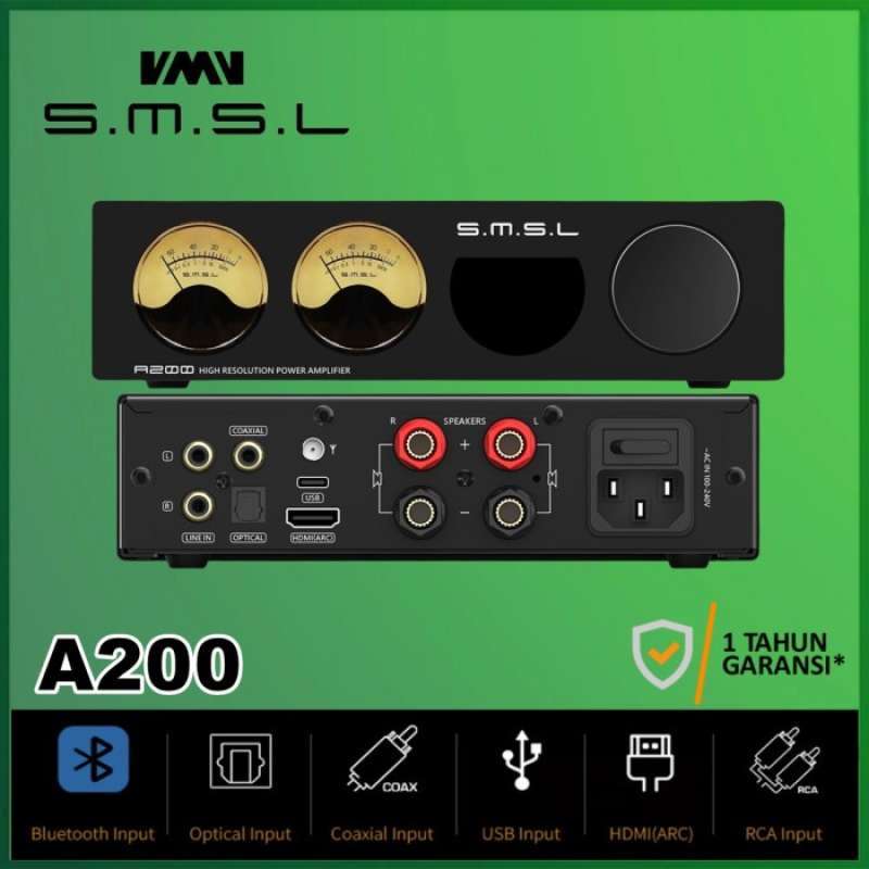 Musik- und Filmfans, aufgepasst! Der S.M.S.L A200 Hi-Fi Verstärker bringt dein Heimkino auf das nächste Level. Mit 6 verschiedenen Eingängen - inklusive Bluetooth 5.0, HDMI (ARC), Optical, Koaxial, USB und Line-In - bist du für alle Quellen bestens ausgerüstet.