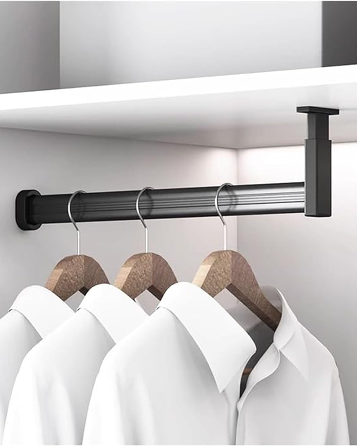 Schluss mit chaotischen Kleiderschränken! Diese ENHEN Kleiderstange in L-Form ist total praktisch - höhenverstellbar von 30 bis 140 cm, passt in fast jeden Schrank. Aus robuster Aluminiumlegierung, hält bis zu 50 kg! Mit rutschfesten Gummistreifen - deine Kleidung fällt nicht runter. Einfach zu montieren: Flansch anschrauben, Stange rein, fertig! Kann bei Bedarf mit Metallsäge gekürzt werden. In schwarz, weiß oder gold erhältlich - passt zu jedem Einrichtungsstil. Perfekt für Mäntel, Anzüge oder schwere Winterkleidung. Auch super für Badezimmer oder als Raumteiler. Endlich alles ordentlich aufhängbar und griffbereit! Einfach installieren und sich über den aufgeräumten Schrank freuen.