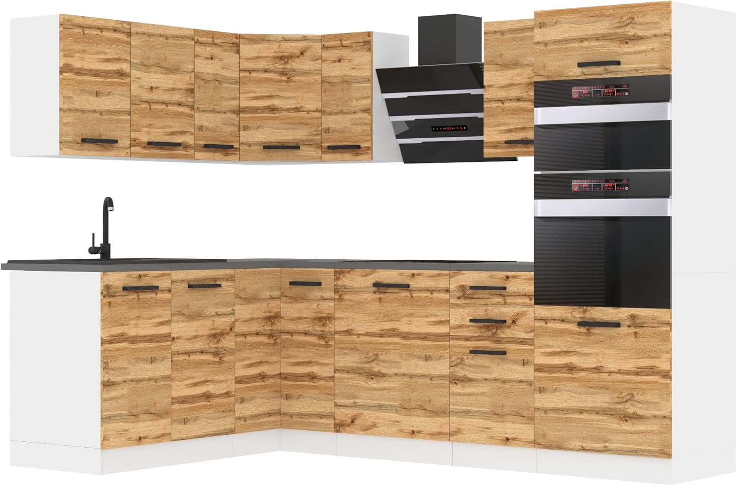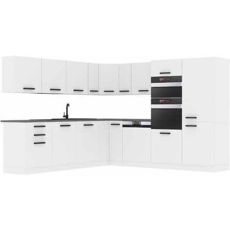 Traumküche gesucht? Die Belini Küchenzeile 'Janet' in L-Form ist einfach der Hammer! In silber matt mit schicken Griffen - das sieht modern und hochwertig aus. Das Komplettset enthält alles was du brauchst: Spülenunterschrank 80cm, Eckunterschrank, verschiedene Unterschränke (60cm, 40cm), Hängeschränke in verschiedenen Größen und natürlich die Arbeitsplatten in den passenden Maßen. Aus hochwertigen Materialien: Decor Econatura-Platten mit ultra-robuster PRO+ Kantentechnologie und Super Soft-Touch-System für sanftes Schließen. Die Metall-Schubladen mit Soft-Closing sind einfach luxuriös! Maße: 360x60cm, Arbeitshöhe 81-86cm. Ohne Elektrogeräte - du kannst dir also deine eigenen Herd, Spüle etc. aussuchen. Vom Hersteller direkt - da sparst du dir den Zwischenhändler. Ob für die neue Wohnung oder die Küchenrenovierung - mit dieser Küche machst du nichts verkehrt. Einfach aufbauen und jahrelang Freude haben!