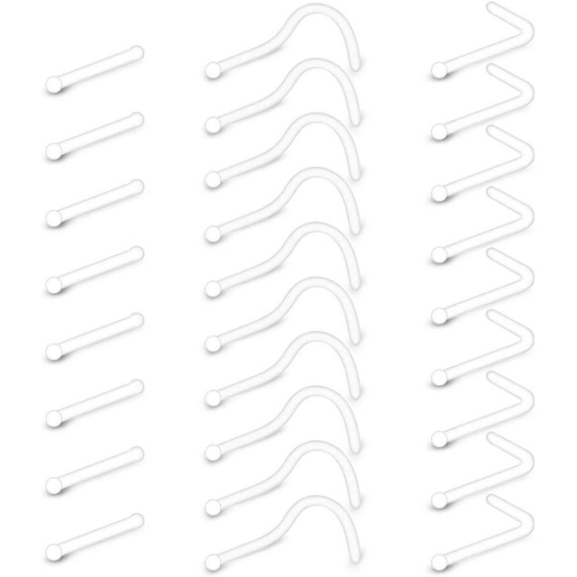 Suchst du unauffällige Nasenstecker? Diese Bioflex Teile sind perfekt! Kriegst 15 Stück - genug für Wechsel oder falls mal eins verloren geht. Aus flexiblem Kunststoff, 0.8mm stark (20G) und 7mm lang. L-förmig, sitzen sicher und sind mega bequem. Super durchsichtig - kaum sichtbar im Piercing. Ideal für Arbeit, Sport oder wenns mal dezent sein soll. Auch gut für frische Piercings oder wenn du Metall nicht verträgst. Oberfläche ist glatt poliert, kein Drücken oder Reiben. Einfach reinmachen und vergessen! Aber Achtung: Nicht beim Schwimmen oder Schlafen tragen, und von Kindern fernhalten - sind kleine Teile.