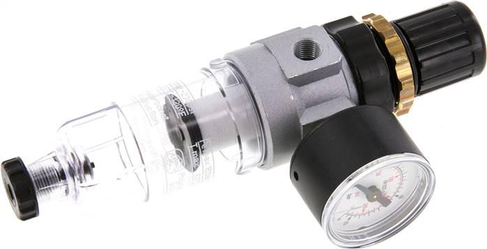 Boah, wenn du mit Druckluft arbeitest und ne zuverlässige Filterung brauchst - der Mini Filterregler ist ein Alleskönner! Für Druckluft und ungiftige Gase, mit Zentrifugalfilter und 5µm Filterporen - da bleibt alles Saubere drin. Regelbereich von 0,5-10 bar, Eingangsdruck 1,5-16 bar - also für die meisten Anwendungen perfekt. Mit Manometer (40mm, G 1/8 Anschluss) siehst du immer genau, was los ist. Die halbautomatische Kondensatentleerung ist genial - entleert sich von selbst, wenn der Druck runtergeht. Aus Zink-Druckguss, Membrane aus NBR, hält Temperaturen von -10°C bis +60°C aus. ATEX-zugelassen, also sicher im Betrieb. Handrad kann arretiert werden - praktisch! Max. 16 cm³ Kondensatmenge, Schalttafelgewinde M30x1,5. Egal ob in Werkstatt oder Produktion - damit hast du immer die richtige Druckluftqualität. Einfach anschließen, Druck einstellen und loslegen - deine Geräte werden's dir danken!