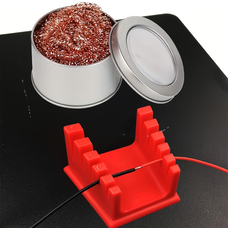 Dieser Lötspitzen-Reiniger macht die Pflege deiner Lötspitze zum Kinderspiel! Die Messingwolle entfernt schonend Oxidation und alte Lötreste, ohne die empfindliche Spitze zu beschädigen. Die integrierte Stahlbürste sorgt für gründliche Reinigung, und das beste: Du brauchst kein Wasser! Einfach die heiße Lötspitze in die Messingwolle stecken, drehen - und schon ist sie sauber. Das Silikon-Gehäuse (7,8x5,2x4,5cm) ist hitzebeständig und verhindert, dass sich der Lötzinn in der ganzen Werkstatt verteilt. Super praktisch für Elektronik-Reparaturen, Modellbau oder Hobby-Projekte. Spart Zeit und Nerven, und deine Lötspitzen halten viel länger. Einfach genial für alle, die regelmäßig löten - ob Profi oder Hobby-Bastler. Deine Lötstation wird's dir danken!