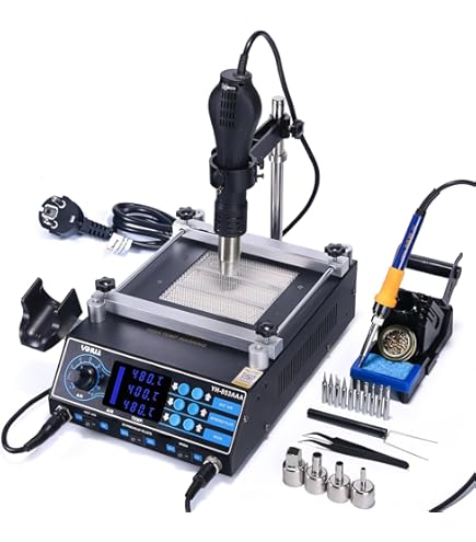 Für alle Profis und ambitionierten Hobbyisten: Diese 800W BGA Infrarot-Lötstation meistert auch die anspruchsvollsten Reparaturaufgaben! Mit dem IR6500 System hast du die volle Kontrolle über 8 Temperatursegmente und kannst 10 Kurvenprofile speichern. Die LED-Anzeige zeigt dir alles genau an. Per USB-Anschluss connectest du die Station sogar mit deinem PC für noch mehr Einstellungsmöglichkeiten. Ob Laptop-Mainboards, Grafikkarten oder Industrieplatinen - hier bekommst du BGA-Chips sicher und präzise gelötet. Das innovative Design minimiert Störungen durch Luftströmungen und garantiert exakte Temperaturkontrolle. Selbst bleifreies Löten ist kein Problem. Inklusive allem nötigen Zubehör: Sensorkabel, Alufolie und englische Anleitung. Achtung: Nur für 220V Netzspannung geeignet! Für Werkstätten, Reparatur-Services und alle, die professionell mit Elektronik arbeiten. Mit dieser Station machst du keine Kompromisse bei Qualität und Präzision. Ein echter Game-Changer für jede professionelle Werkstatt!