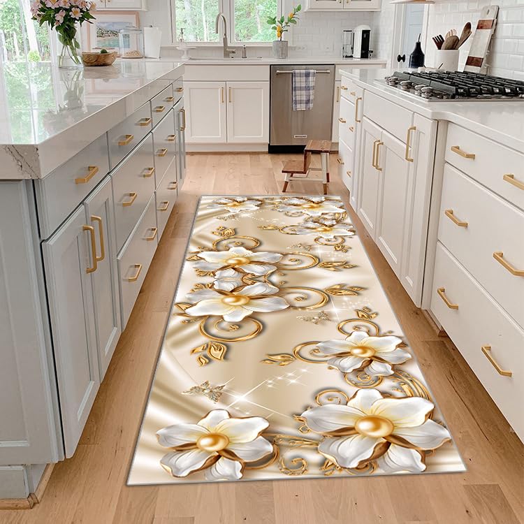 Oh, wie hübsch! Dieser Teppich-Läufer bringt Frühlingsstimmung in deine vier Wände. Das 3D-Blumenmuster sieht nicht nur super aus, es fühlt sich auch noch mega weich an den Füßen an. Perfekt für die Küche, wo man ja oft länger steht - mit 7mm Florhöhe ist das wie gehen auf Wolken!