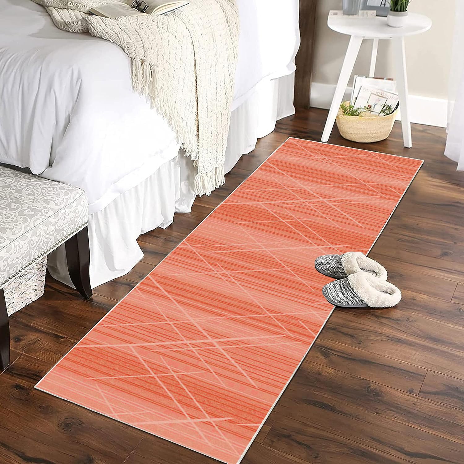Die rutschfeste TPR-Gummibeschichtung auf der Unterseite sorgt dafür, dass der Teppich nicht wegrutscht - super sicher, auch wenn mal was daneben geht. Die Ränder sind sauber verarbeitet, kein Ausfransen. Passt in Flur, Küche, Schlafzimmer, sogar ins Badezimmer. Farben? Brillant und langlebig! Einfach mal ausprobieren - dieser Teppich macht einfach gute Laune!