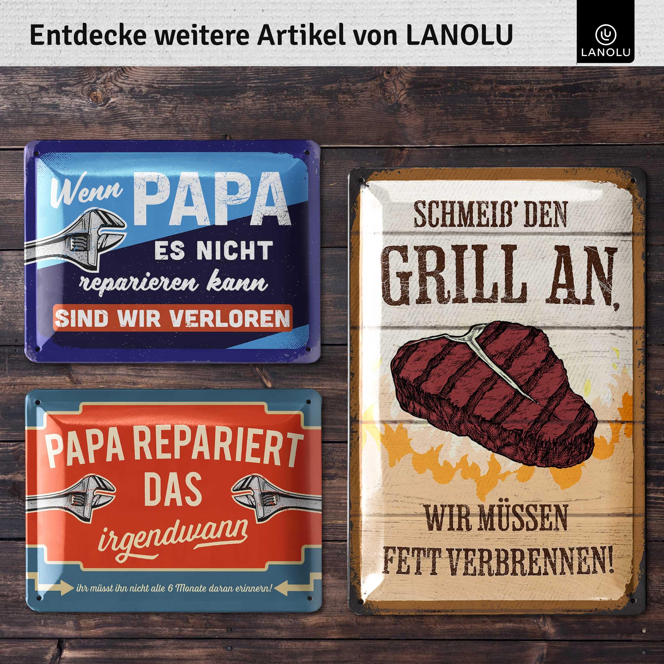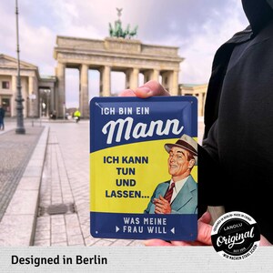 Alter, dieses LANOLU Blechschild ist ja mal mega witzig! \EIN MANN MUSS\ - der Spruch kommt garantiert gut an. Mit 15x20cm ist es die perfekte Größe für Küche, Wohnzimmer, Garten oder Werkstatt. Aus stabilem Stahlblech gefertigt und mit Klarlack überzogen, ist es besonders langlebig und glänzt schön. Die vier vorgebohrten Löcher machen die Montage super einfach, oder du hängst es mit einer Kordel auf. Designed in Berlin mit viel Liebe zum Detail - das merkt man! Perfekt als Geschenk für Männer, Väter, Freunde oder Paare zu Geburtstagen, Vatertag, Weihnachten oder einfach so. Vintage-Optik combined with lustigem Spruch - da freut sich garantiert jeder! Von einem jungen Start-Up, das Qualität groß schreibt. Einfach bestellen und Begeisterung verschenken!