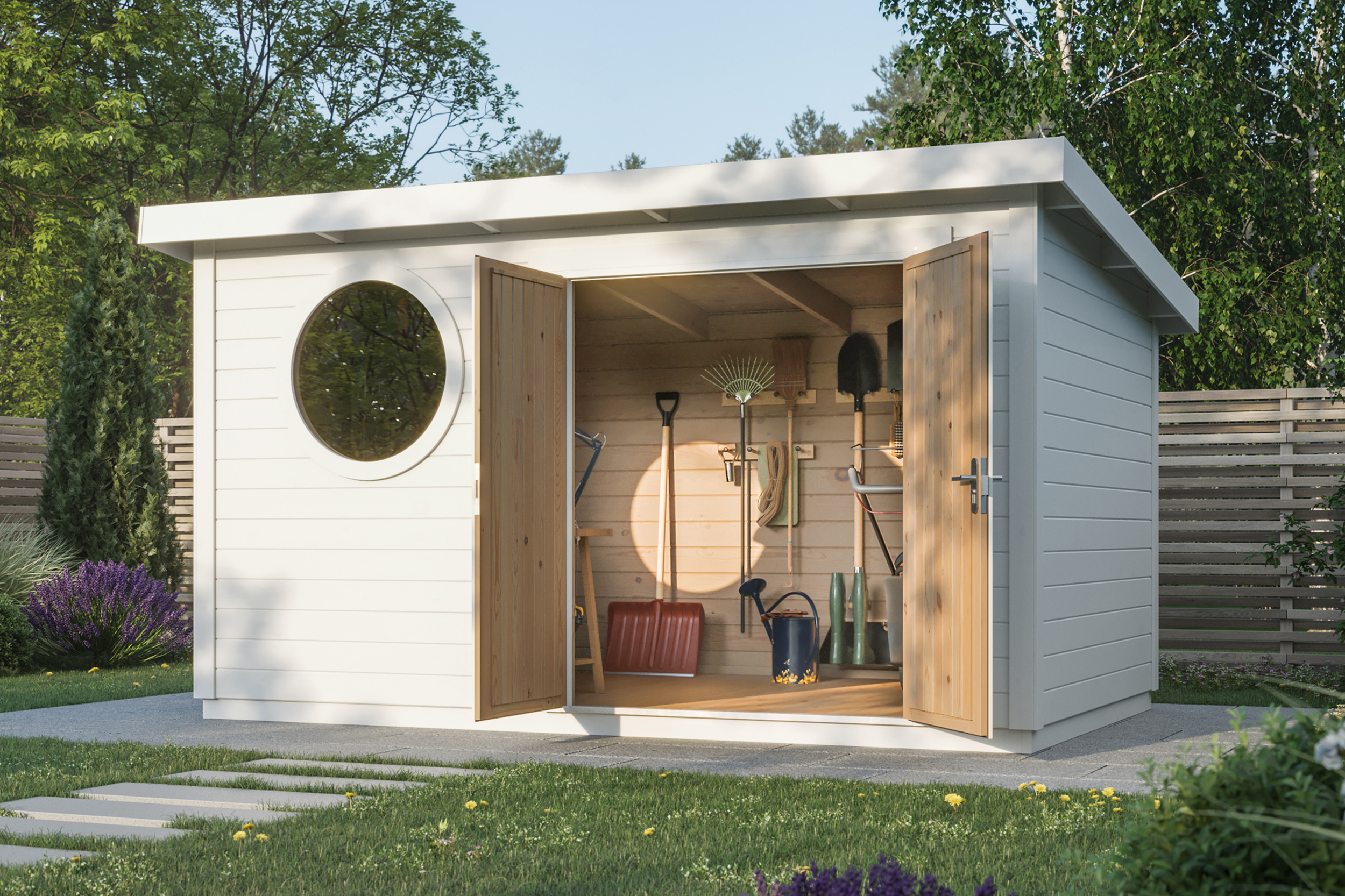 Endlich Ordnung im Garten! Dieses LANTRO Gerätehaus in blau bringt System in deine Gartensachen. Mit den Maßen 124x46x174cm passt es auch in kleinere Gärten, Terrassen oder auf den Balkon. Aus stabilem Holz gebaut und mit PVC-Abdeckung - hält Regen und Schnee stand. Zwei integrierte Ablagen sorgen für perfekte Organisation von Werkzeugen, Gartengeräten oder sogar Fahrrädern. Super praktisch als Fahrradunterstand oder Aufbewahrungsschrank. Das schlanke Design sieht nicht nur gut aus, sondern spart auch Platz. Einfach aufbauen und schon hast du deine Gartenutensilien ordentlich verstaut und geschützt. Perfekt für alle, die ihren Garten aufräumen und ihre Geräte vor Wetter schützen wollen!