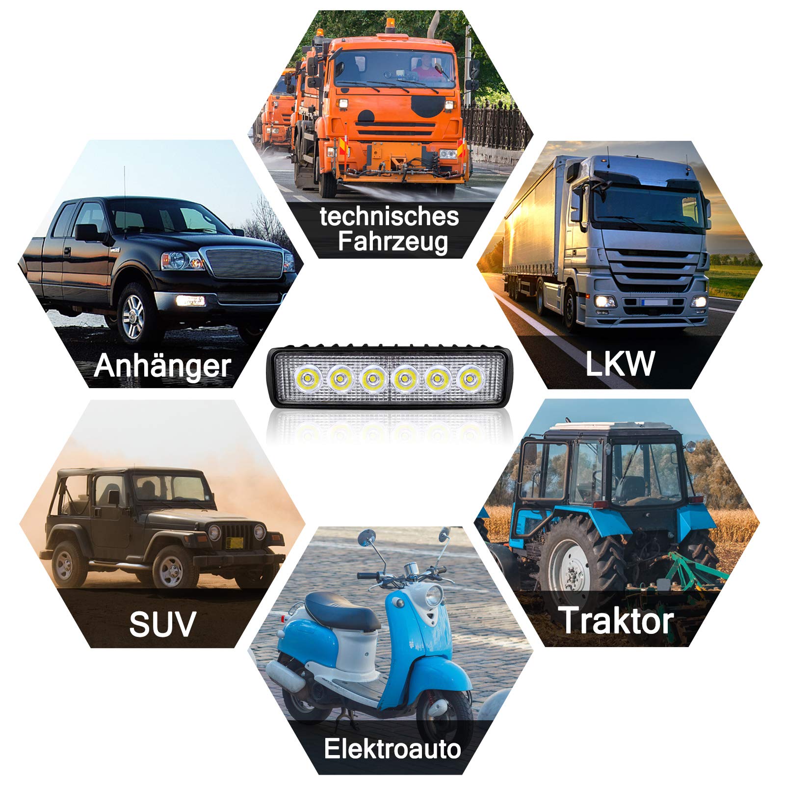Mit diesen LED Arbeitsscheinwerfern siehst du auch bei Nacht und Nebel was los ist! Das 4-teilige Set liefert super helles Weißlicht (6000-6500K) und verbraucht dabei nur 18W pro Scheinwerfer. Perfekt für Offroad-Abenteuer oder als Arbeitsbeleuchtung.