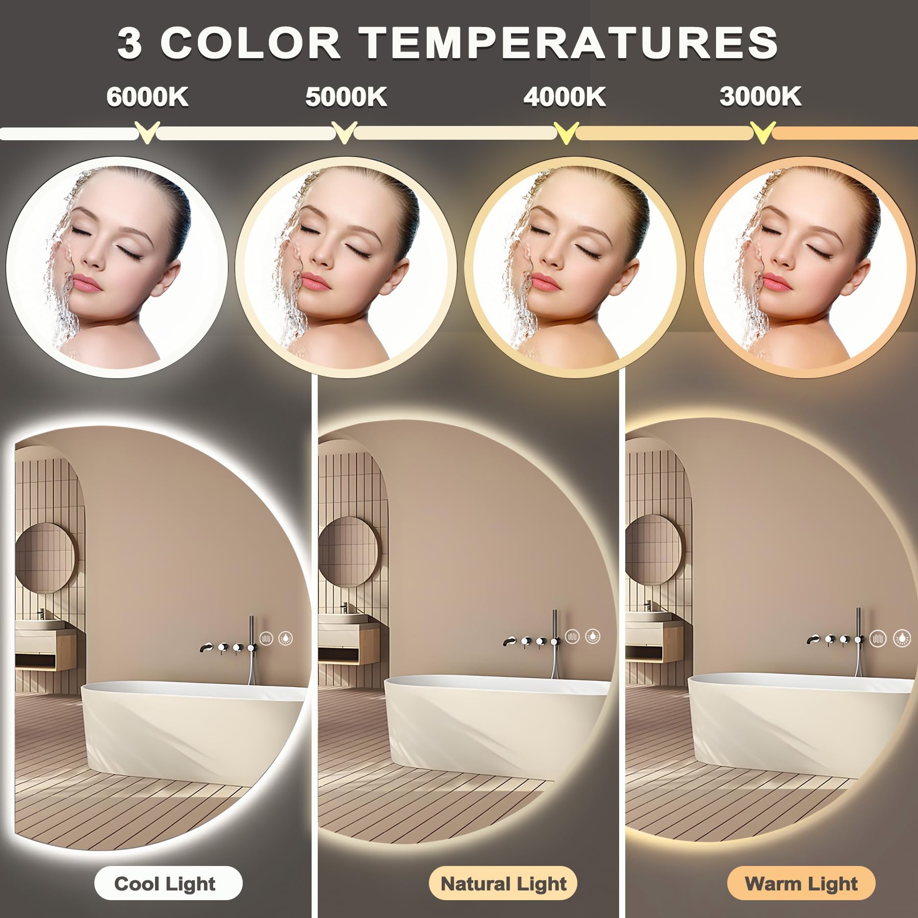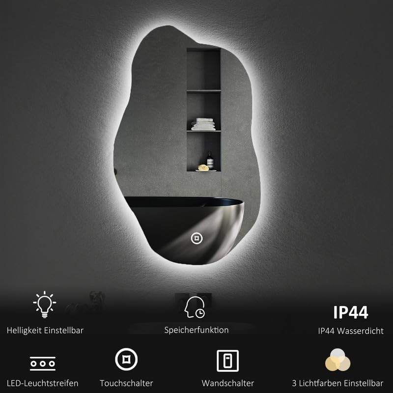 Wow, dieser LED-Badezimmerspiegel ist einfach der Hammer! Mit 120x60 cm Größe hast du mehr als genug Platz für deine Morgenroutine. Das coole asymmetrische Design sieht mega modern aus und passt in jedes Badezimmer. Aber das Beste: Drei Lichtfarben - Warmweiß, Neutralweiß und Kaltweiß - damit findest du immer das perfekte Licht fürs Schminken oder Rasieren. Und die Helligkeit kannst du von 10% bis 100% dimmen! Der Antibeschlag-Funktion sorgt dafür, dass der Spiegel auch nach heißem Duschen klar bleibt. Mit IP54 Schutz ist er super sicher für feuchte Badezimmer. Das 5mm dicke Silberglas gibt ein verzerrungsfreies Bild wieder und die explosionssichere Folie macht ihn extra sicher. Montage ist easy mit den Aufhängeplatten - aber für die Stromversorgung lieber einen Elektriker fragen! Ein absolutes Upgrade für dein Badezimmer!