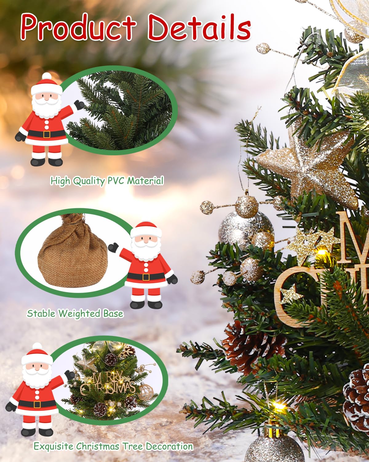 Oh, wie süß! Dieser 60 cm kleine Weihnachtsbaum bringt weihnachtliche Stimmung auf jeden Tisch. Mit eingebauter LED-Beleuchtung und mechanischem 360-Grad-Drehwerk wird er zum absoluten Hingucker. Aus hochwertigem PVC-Material ist er ungiftig, geruchlos und kann Jahr für Jahr wiederverwendet werden. Die beflockte Standfläche verhindert lästiges Umkippen. Im Lieferumfang ist alles dabei, was du zum Dekorieren brauchst: Christbaumkugeln in verschiedenen Farben, LED-Lichterkette, Schneeflocken, Schleifen und vieles mehr. Einfach die Zweige entfalten, nach Herzenslust schmücken und die Weihnachtsmusik genießen. Perfekt für kleine Wohnungen, als Schreibtischdekoration oder um Esstische festlich zu gestalten. Ein wunderbares Geschenk für Familie, Freunde oder einfach für dich selbst - damit die Weihnachtszeit noch gemütlicher wird!