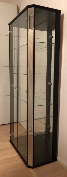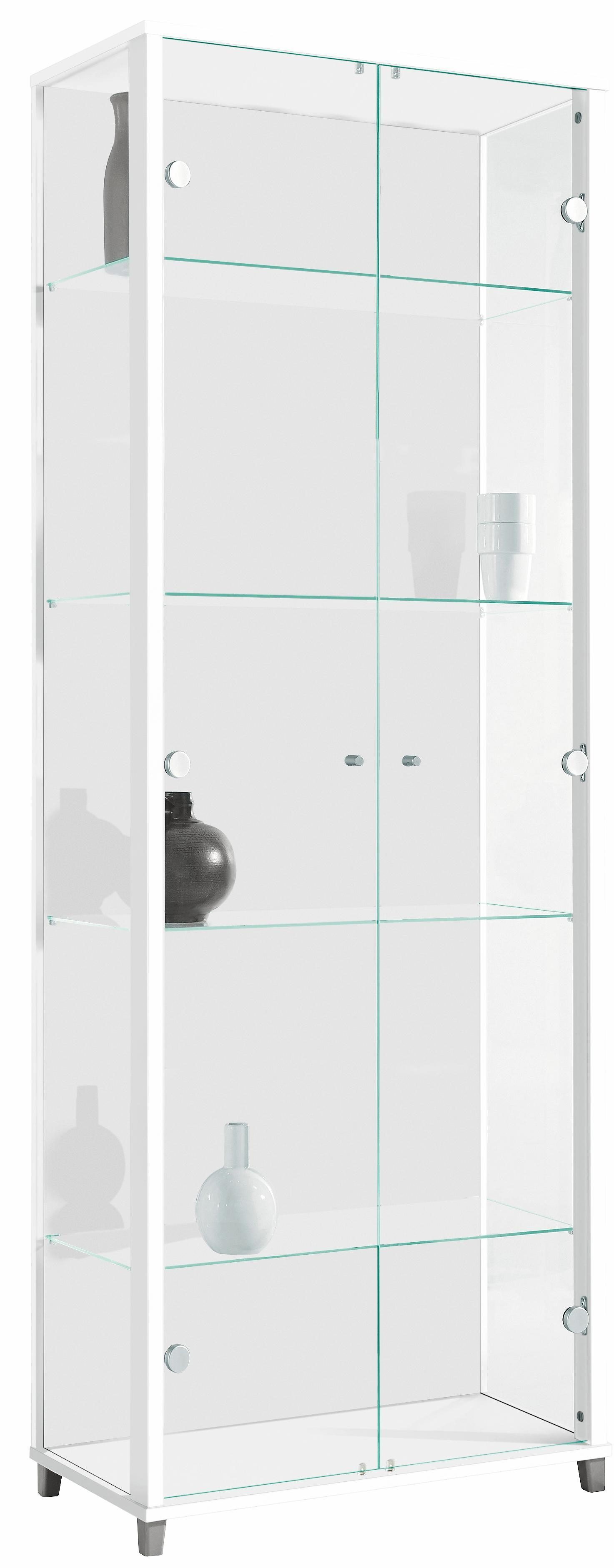 Diese elegante Glasvitrine macht deine Sammlerstücke zum echten Hingucker! Mit 164cm Höhe bietet sie reichlich Platz für deine schönsten Stücke. Die integrierte LED-Beleuchtung setzt alles perfekt in Szene - du kannst sogar die Lichtfarbe an deine Stimmung anpassen! Mit Spiegelrückwand, die deine Exponate von allen Seiten zeigt. 4 stabile Glasböden bieten viel Stauraum für Bücher, Figuren, Schmuck oder was du auch sammelst. Die beiden Türen mit Sicherheitsschloss schützen deine wertvollen Stücke vor neugierigen Blicken und unerwünschtem Anfassen. Modernes, rahmenloses Design in Weiß oder Schwarz - passt in jedes Wohnzimmer oder Büro. Einfach montiert und mit Kippschutz für maximale Stabilität. Einfach deine Sammlung einräumen, Licht anmachen und staunen - so schön war deine Sammlung noch nie!