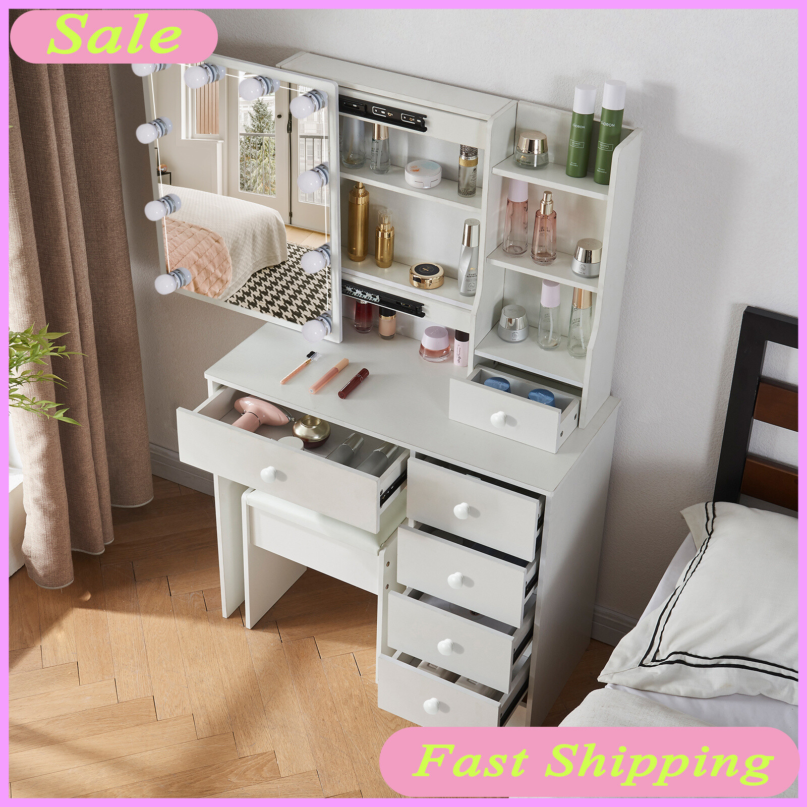 Dein persönliches Beauty-Headquarter! Dieser elegante Schminktisch mit integrierter LED-Beleuchtung verwandelt dein Schlafzimmer oder Bad in einen professionischen Kosmetikbereich. Mit 100cm Breite bietet er reichlich Platz für all deine Beauty-Produkte. Das besondere Feature: Der teleskopische Aufbau ermöglicht es dir, den Seitenschrank wahlweise links oder rechts zu positionieren - perfekt anpassbar an deine Raumgegebenheiten. Die LED-Beleuchtung am Spiegel bietet drei Lichtfarben (warm, kalt, natürlich) mit einstellbarer Helligkeit für die perfekte Make-up-Beleuchtung bei jeder Tageszeit. Aus hochwertigen UV-Marmorplatten und verchromten Metallbeinen gefertigt, ist der Tisch nicht nur stabil, sondern auch ein echter Hingucker. Die 5 geräumigen Schubladen bieten organisierten Stauraum für Schminke, Schmuck und Pflegeprodukte. Ob für die tägliche Morgenroutine oder die besondere Abendgarderobe - mit diesem Schminktisch startest du perfekt gestylt in den Tag. Ein wunderbares Geschenk für besondere Anlässe wie Geburtstage, Weihnachten oder den Muttertag!