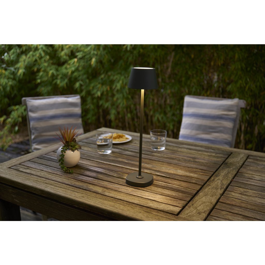 Wow, diese Solar-Tischlampe ist der perfekte Begleiter für gemütliche Sommerabende! Mit warmweißem 2700K Licht schafft sie sofort eine kuschelige Atmosphäre auf deiner Terrasse oder im Garten.\\n\\nDie stufenlose Dimmfunktion lässt dich die Helligkeit genau an deine Stimmung anpassen - von romantisch gedämmt bis hell erleuchtet. Dank IP44-Zertifizierung ist sie wetterbeständig und hält auch mal einem Regenschauer stand.\\n\\nDer integrierte USB-C-Anschluss sorgt für einfaches und schnelles Aufladen. Perfekt also auch für den Innenbereich, wenn mal keine Sonne scheint!\\n\\nIm Lieferumfang ist alles dabei, was du brauchst: Lampe, USB-C Ladekabel und Bedienungsanleitung. Einfach hinstellen, aufladen und den Abend genießen - stylisher und praktischer geht's kaum!