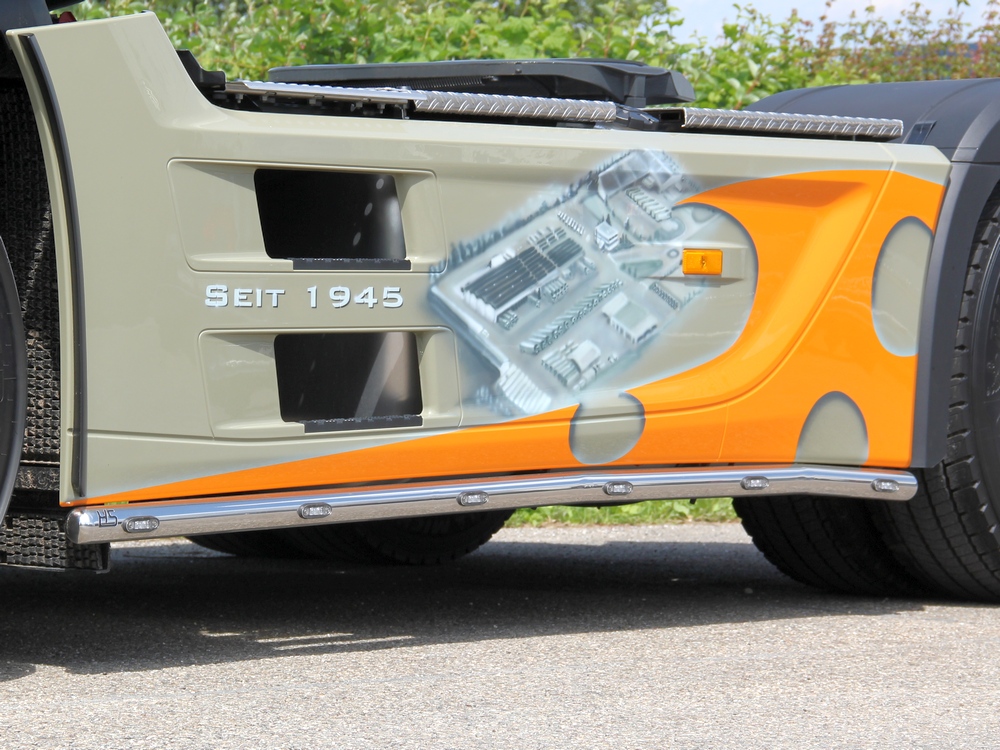 • Edelstahl Seitenschutzrohr Mit LED - Für Mercedes Actros MP4-MP5 3700/3850 Radstand