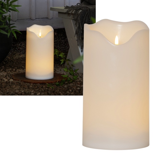 Gemütliche Atmosphäre für deinen Garten! Diese 30 cm hohe Outdoor LED Kerze von Lights4fun verbreitet mit ihrer warmweißen (2700K), flackernden LED ein wunderschönes, authentisches Licht. Der cremefarbene Kunststoff sieht aus wie echtes Wachs und ist wetterfest (IP44 geprüft) - perfekt für den Einsatz im Freien. Der praktische 6-Stunden-Timer schaltet die Kerze automatisch ein und aus - 6 Stunden Leuchten, 18 Stunden Pause. So musst du nicht jeden Abend daran denken. Betrieben wird sie mit 3x C-Batterien (nicht im Lieferumfang), die bis zu 200 Leuchtstunden halten. Ob auf der Terrasse, im Garten, auf der Treppe oder in einer Laterne - diese LED Kerze sorgt für behagliche Stimmung ohne die Brandgefahr echter Kerzen. Einfach einschalten und entspannen!