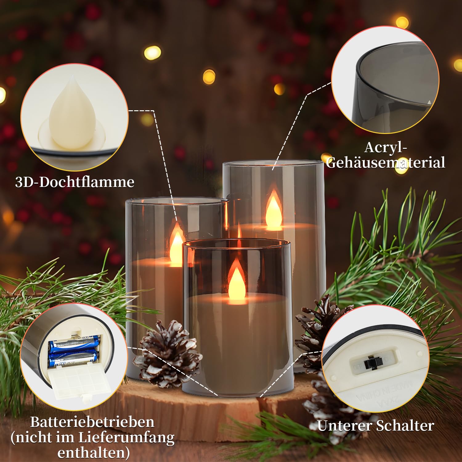 Wow, diese LUCOZA LED-Kerzen sehen einfach täuschend echt aus! Im 2er-Set mit 10cm Höhe in schönem Creme-Ton. Die flackernden Flammen mit 3D-Dochtlicht schaffen eine super gemütliche Atmosphäre - genau wie echte Kerzen, aber komplett sicher ohne Feuer. Per Fernbedienung steuerst du Timer für 2/4/6/8 Stunden und die Helligkeit. Mit AA-Batterien betrieben - einfach einsetzen und genießen. Perfekt fürs Wohnzimmer, als Tischdekoration oder in Laternen. Egal ob für romantische Abende, Entspannung oder besondere Anlässe - diese Kerzen machen einfach immer was her. Einfach einschalten und schon verbreiten sie ihren warmen, einladenden Schein - ohne Risiko und ohne Aufwand!