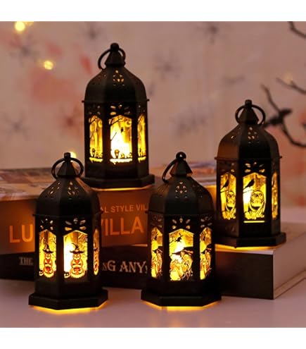 Gruselspaß für Halloween! Diese beiden LED-Kerzenlaternen bringen perfekte Stimmung für deine Halloween-Party. Mit 20cm Höhe und coolen 3D-Gravurmustern (Kürbis und Schloss). IP44 geschützt - perfekt für drinnen und draußen! Mit Metall-Aufhängering für Bäume oder Decken. Benötigt nur 3 AAA Batterien (nicht im Lieferumfang). Aus sicherem PVC - auch für Kinder geeignet. Super für: • Garten-Deko • Wohnzimmer • Kinderzimmer • Halloween-Partys Mach dein Zuhause zur gruseligen Halloween-Location! Einfach Batterien rein, aufhängen und die gruselige Stimmung genießen. Perfekt für eine unvergessliche Halloween-Nacht!