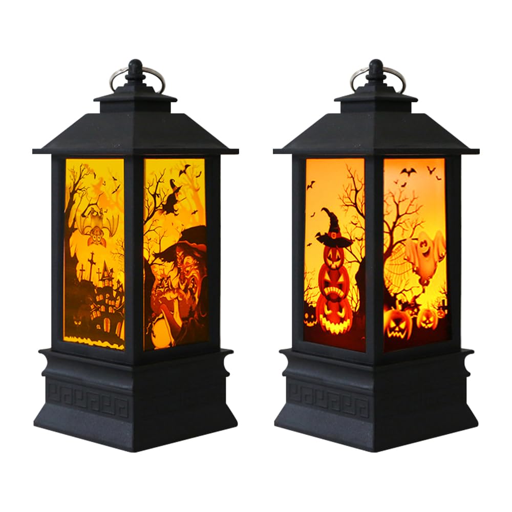 • 2x Halloween LED Kerzenlaterne - 20cm Kürbis Laterne Für Deko