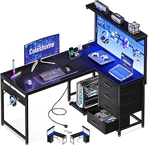 Suchst du den perfekten Gaming-Schreibtisch? Dieser L-förmige Tisch von Coleshome hat alles! 130x100cm groß - Platz für mehrere Monitore und Zubehör.