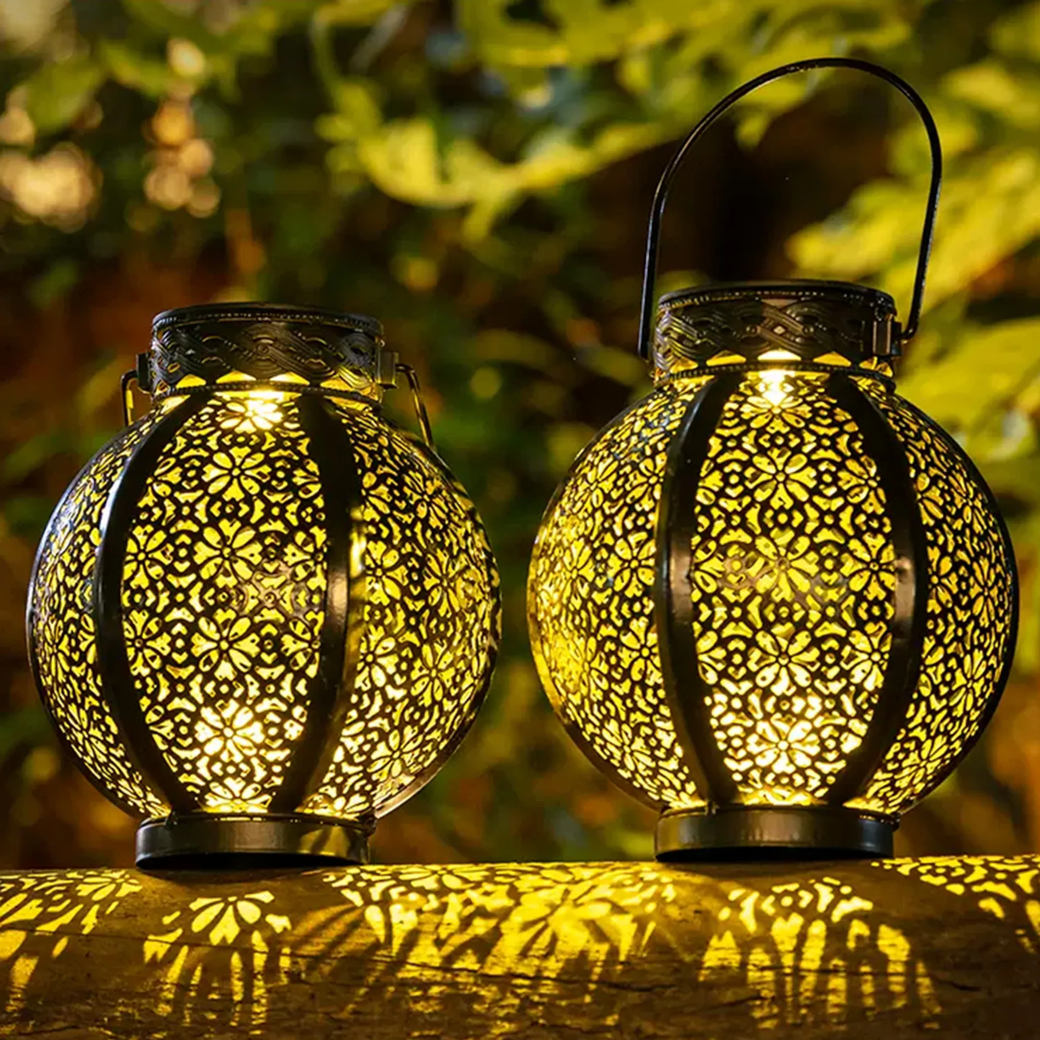 Wie magisch! Diese beiden Solar-Laternen bringen romantisches Licht in deinen Garten. Jede Laterne hat 20 cm Durchmesser - aus robustem Nylon, wetterfest und wasserdicht. Das amorphe Silizium-Solarpanel lädt sich tagsüber auf - bei Dämmerung gehen die warmweißen LEDs automatisch an. Keine Kabel, keine Stromkosten! Einfach entfalten, Schalter aktivieren und aufhängen oder hinstellen - wo immer du magst. Perfekt für die Terrasse, den Balkon, die Gartenparty oder die Hochzeitsdeko. Das warmweiße Licht schafft eine total gemütliche Stimmung - ideal für Sommerabende im Freien. Auch bei Regen kein Problem - die Nylon-Hülle hält stand. Nach der Party einfach zusammenfalten und verstauen. Wiederverwendbar und umweltfreundlich - die Sonne macht die Arbeit! Super für Camping, den Vorgarten oder die Hauseinfahrt. Mach deinen Garten zur Wohlfühloase - mit diesen süßen Solar-Laternen!