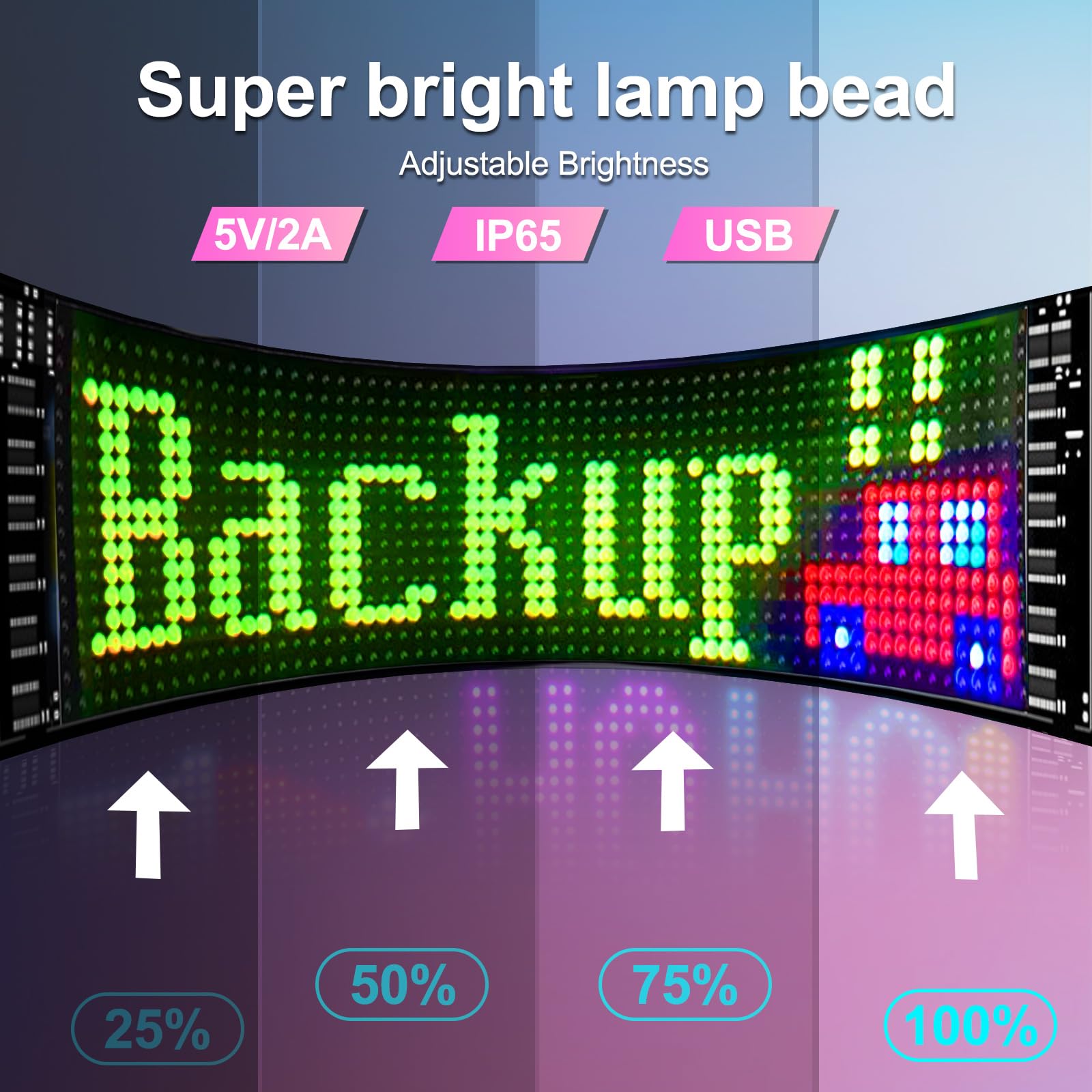 Coole Texte und Animationen mit dieser programmierbaren LED-Laufschrift! Das 17x7cm große Display ist flexibel biegbar und wasserdicht (IP65). Per APP steuerbar - zeig eigene Texte, Muster oder Graffiti an. Bis zu 12 Zeichen gleichzeitig, 318 Zeichen Gesamtkapazität. Einfach per USB betreiben - mit Auto-Ladegerät oder Powerbank. Perfekt für LKW, Geschäfte, Partys oder als Deko. Mach dein Fahrzeug oder Geschäft zum Blickfang - bestell jetzt und zeig deine Botschaft!