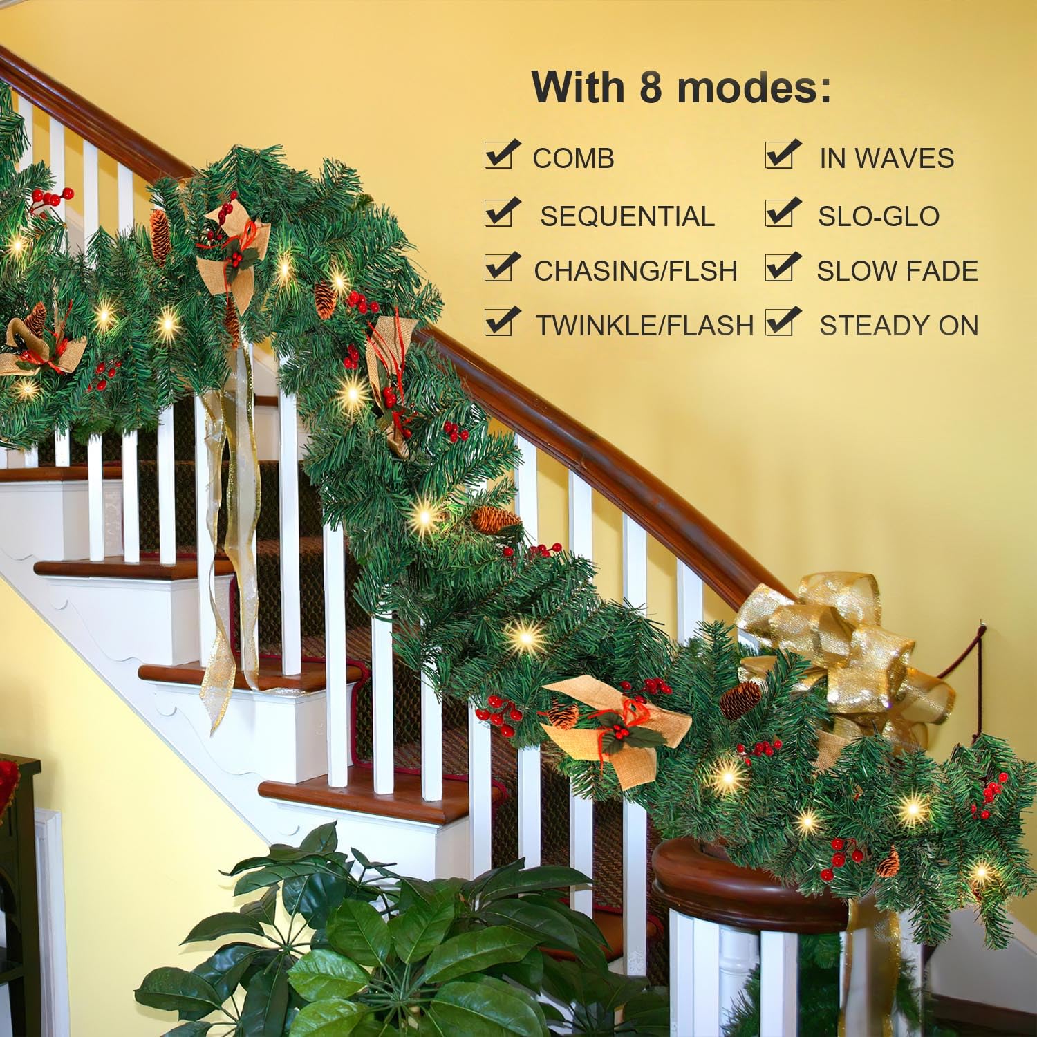 Weihnachtszeit ist Gemütlichkeitszeit! Und diese wunderschöne Weihnachtsgirlande von Gimisgu bringt sofort festliche Stimmung in dein Zuhause. Mit satten 5 Metern Länge und 320 natürlichen Tannenspitzen sieht sie aus wie frisch aus dem Wald - ist aber natürlich künstlich und damit wiederverwendbar. Die 100 warmweißen LED-Lichter sorgen für eine gemütliche Atmosphäre und bieten 8 verschiedene Beleuchtungsmodi: Dauerlicht, langsames Blinken, schnelles Blinken, abwechselndes Blinken, Helligkeitsverlauf und mehr. So findest du für jede Stimmung den passenden Modus! Im Lieferumfang sind tolle Dekoelemente enthalten: 10 rote, 10 silberne und 10 goldene Kugeln, plus 18 Schneeflocken und 18 rote Schleifen. Damit kannst du die Girlande individuell gestalten. Der flexible Draht im Inneren ermöglicht es dir, die Girlande nach Belieben zu formen - perfekt für Treppengeländer, Türen, Fenster oder den Kamin. Mit IP44 Schutzart ist sie sowohl für innen als auch für geschützte Außenbereiche geeignet. Das 5 Meter lange Kabel gibt dir genug Spielraum für kreative Dekorationen. Einfach den Stecker in die Dose und schon verwandelst du dein Zuhause in eine weihnachtliche Wohlfühloase. Ob im Wohnzimmer, Flur oder als Türkranz - diese Girlande macht überall eine gute Figur!