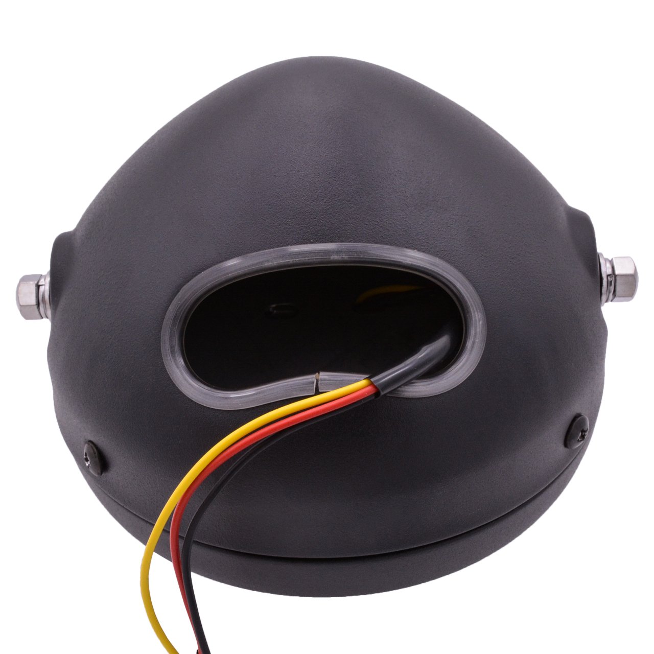Bring deine Maschine zum Strahlen! Dieser 16,5cm LED Scheinwerfer in mattschwarz gibt deinem Bike den ultimativen Look. Perfekt für Chopper, Bobber, Cafe Racer und Custom Bikes. Mit klarer Glaslinse und weißem LED-Licht (6000K) für beste Sicht. Spart Energie im Vergleich zu Halogen und hält ewig. Features Fern- und Abblendlicht für alle Fahrsituationen. Aus Metallgehäuse - robust und wetterfest. Passt für Harley, Honda, Yamaha und andere Marken. Achtung: Nur für Off-Road use, nicht DOT-zugelassen. Professionelle Installation empfohlen. Mach dein Bike einzigartig und fahr mit besserer Sicht - day and night!