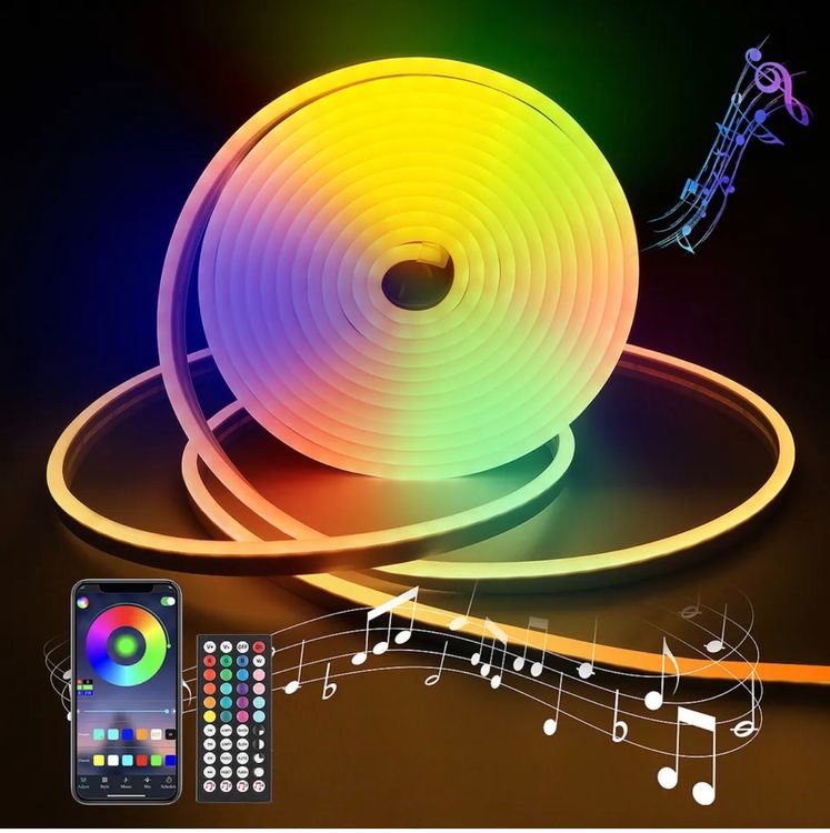 Wow, dieser LED-Streifen bringt richtig Stimmung in deine Bude! Ganze 5 Meter Neon-LED-Schlauch mit integrierten IC-Chips - da leuchtet nicht nur eine Farbe, sondern es können mehrere gleichzeitig angezeigt werden. Mega coole Farbverläufe und Animationen die dein Zimmer in eine Lichtshow verwandeln. Per Bluetooth und App steuerbar - mach dein Handy zur Fernbedienung! IP67 wasserdicht - also auch draußen am Balkon oder im Garten super einsetzbar. Extrem flexibel - lässt sich in Herzen, Schriftzüge oder beliebige Formen biegen. Auch individuell zuschneidbar - pass die Länge genau an deine Bedürfnisse an. Perfekt fürs Schlafzimmer, Wohnzimmer, Gaming-Bereich oder Partys. Einfache Montage mit Klebeband - kein Bohren nötig. Mit Musik-Synchronisation - dein Licht tanzt zum Beat! Aus hochwertigem PVC - langlebig und sicher. Verwandele deine vier Wände in eine coole Lounge - damit beeindruckst du garantiert jeden Besucher!