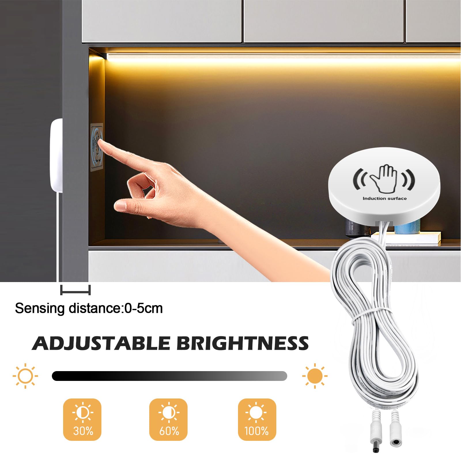 Modernste Lichtsteuerung ganz ohne Bohren! Diese 2 LED Touch Dimmer in Schwarz sind total genial - einfach aufkleben und fertig! Der Dimmer funktioniert durch Holz, Stein, Glas und Kunststoff bis 3 cm Dicke. Einfach kurz antippen zum Ein-/Ausschalten, länger drücken zum Dimmen. Mit Speicherfunktion - merkt sich deine letzte Helligkeit. Eingangsspannung: 3.3-24V DC, bei 12V max. 5A Strom. Perfekt für LED-Lichtleisten, Tischlampen oder Schrankbeleuchtung. Einfache Installation: Doppelseitiger Klebeaufkleber, Kabel mit Klemmen - kein Löten nötig! Rot: Vin+, Schwarz: Vin-, Blau: Vout+, Grün: Vout-. Wichtig: Erst die Lampe, dann die Stromversorgung anschließen. Nicht in der Nähe von Metall platzieren. Ultradünnes Design mit nur 7 mm Stärke - fast unsichtbar! Ideal für Schränke, Garderoben, Vitrinen oder Wohnmobile. Mach dein Zuhause smart - ganz ohne Stemmarbeiten!