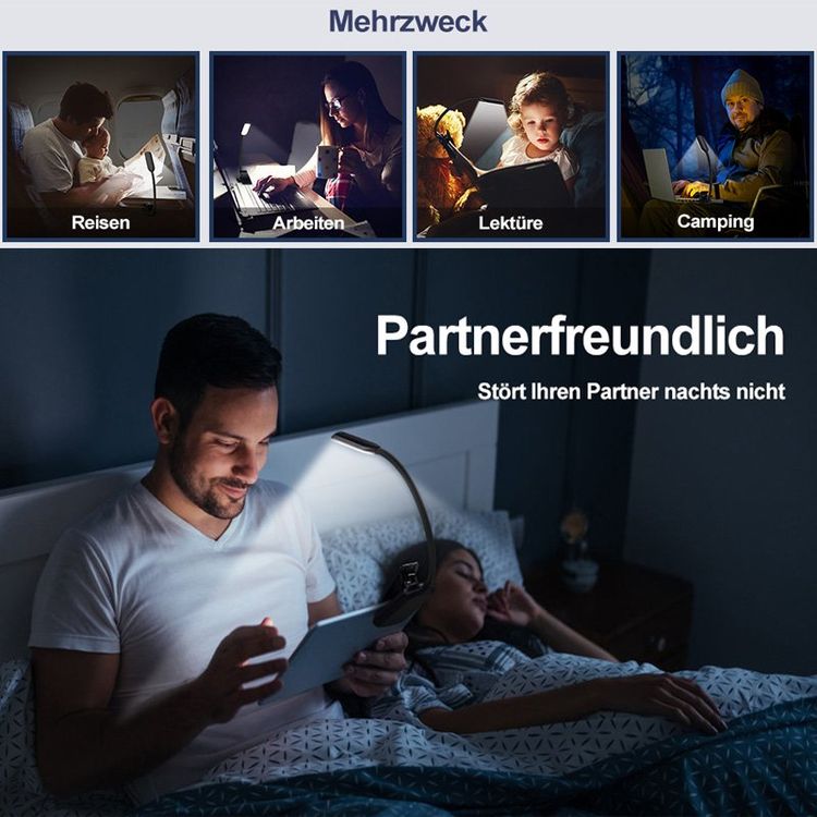 Hey Bücherwurm! Die OUSFOT Leselampe ist dein bester Freund für gemütliche Leseabende. Mit 9 LEDs und drei Beleuchtungsmodi (warmweiß, kaltweiß, bernstein) findest du das perfekte Licht, das die Augen schont. Der flexible Schwanenhals lässt sich 360° drehen, sodass du den Strahl genau dorthin lenkst, wo du ihn brauchst. Die Klemme mit 40 mm Weite hält sicher an Büchern, Kopfstützen oder Tischen. USB-aufladbar mit 600 mAh Akku - nach vollem Laden hält sie bis zu 12 Stunden. Touch-Sensor für einfache Bedienung, und die bernsteinfarbene Beleuchtung reduziert Blaulicht für besseren Schlaf. Super leicht und tragbar, ideal für unterwegs, im Flugzeug oder im Bett. Einfach aufladen, anklemmem und in dein nächstes Abenteuer eintauchen - Lesen war noch nie so angenehm!