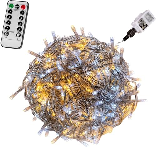 VOLTRONIC LED Lichterkette 200 LEDs - IP44 Wasserdicht, Mit Fernbedienung, Warmweiß