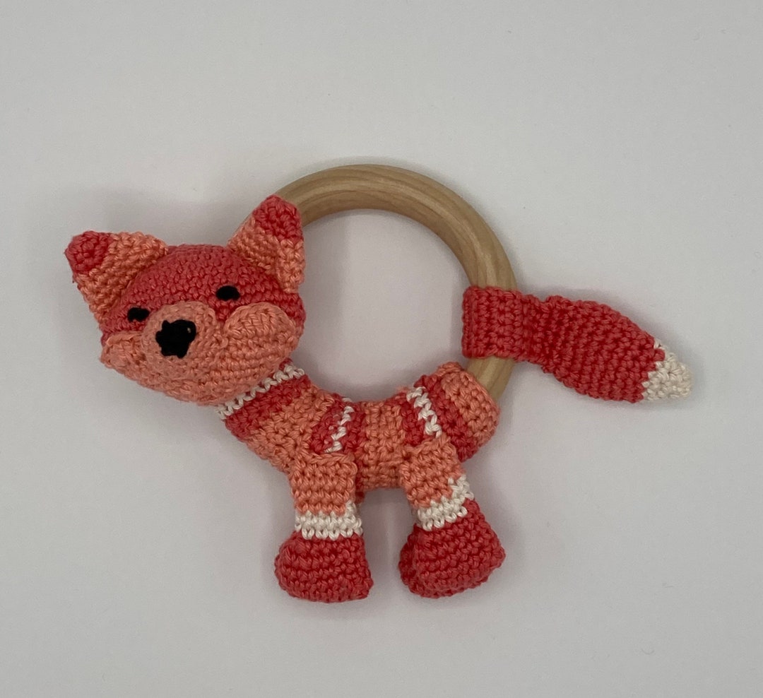 • LES DÉGLINGOS Baby Rassel Cyranos Der Fuchs - Aktivitätsrassel Mit Beißring 17cm