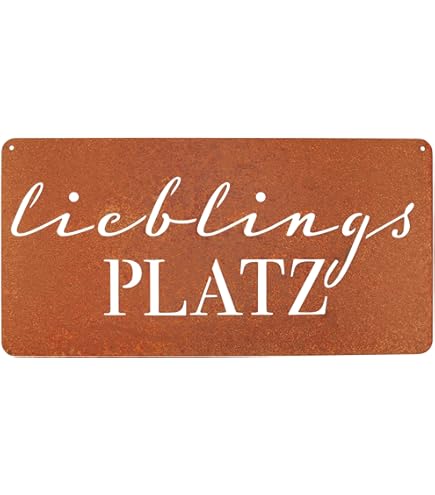 Jeder hat einen Lieblingsplatz im Garten - und jetzt kannst du ihn auch zeigen! Dieses voll süße Gartenschild in Edelrost-Optik mit der Aufschrift 'Lieblingsplatz' bringt sofort gemütliche Atmosphäre in deine Grünoase. Aus Metall, 46 cm breit, 20 cm hoch, mit 12 cm langen Ketten zum Aufhängen. Der Vintage-Look passt super zu jedem Gartenstil. Einfach an zwei Haken befestigen - und schon strahlt dein Garten noch mehr Gemütlichkeit aus!