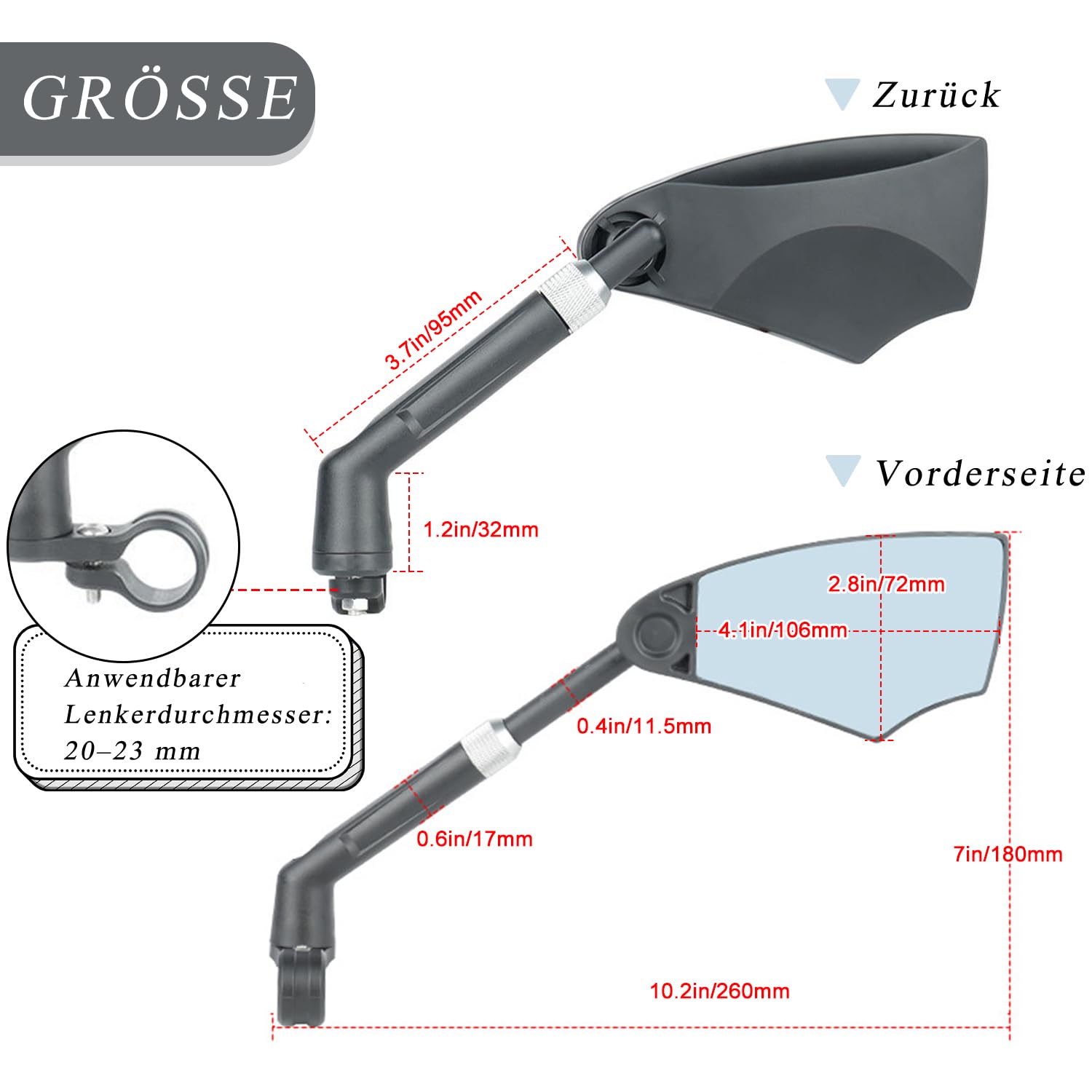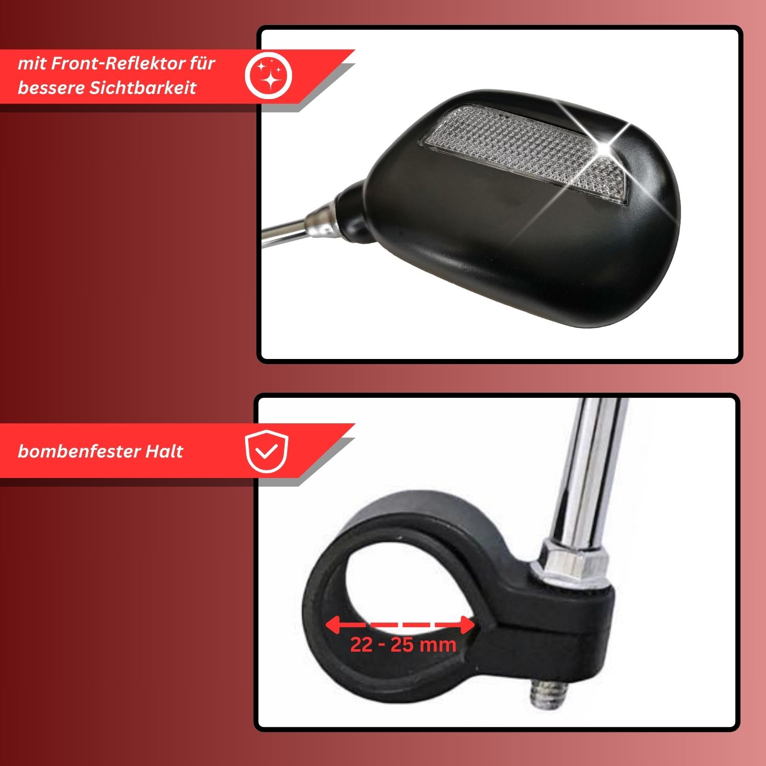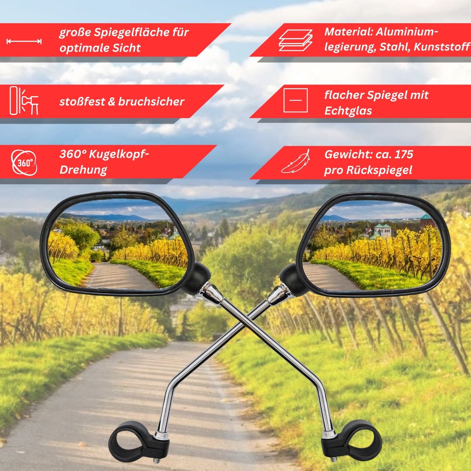 Hey, sicher unterwegs mit dem LINGHUANG Fahrradspiegel! Der klappbare Rückspiegel mit riesiger Spiegelfläche gibt dir den perfekten Überblick - egal ob auf der Straße oder im Gelände. Mit 360° Drehfunktion stellst du ihn genau so ein, wie du ihn brauchst. Die ausziehbare Spiegelstange (0-50mm) passt sich jedem Winkel an und der Blendschutz sorgt für klare Sicht auch bei Sonne. Super einfach zu montieren auf Lenker mit 20-23mm Durchmesser. Perfekt für E-Bikes, E-Scooter, Rennräder und MTBs. Einfach aufklappen und sicher losfahren!